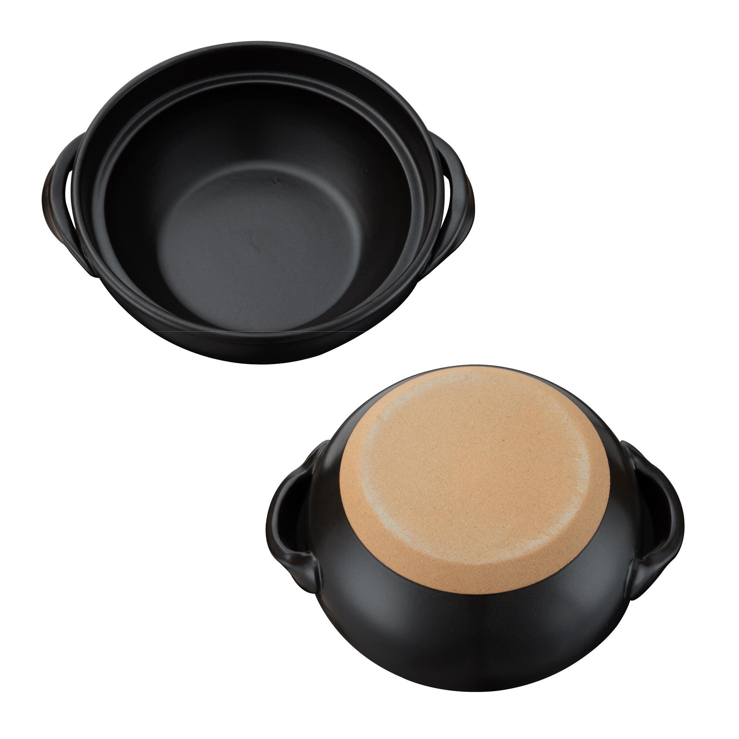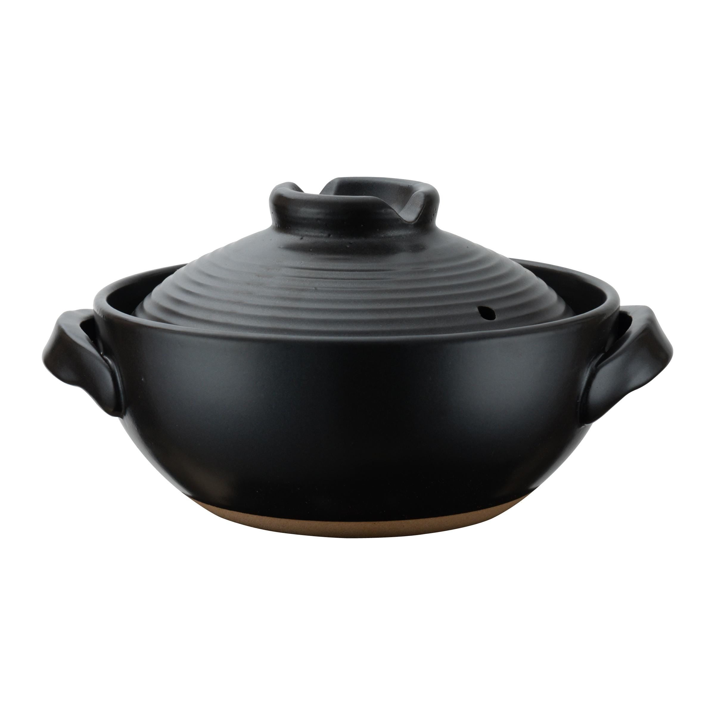 Black Glazed Donabe Pot – 7.3 in / 900 ml – Heat Resistant Ceramic – Gas Stove Only – For Hot Pot and Rice Cooking Japan import by Maebata