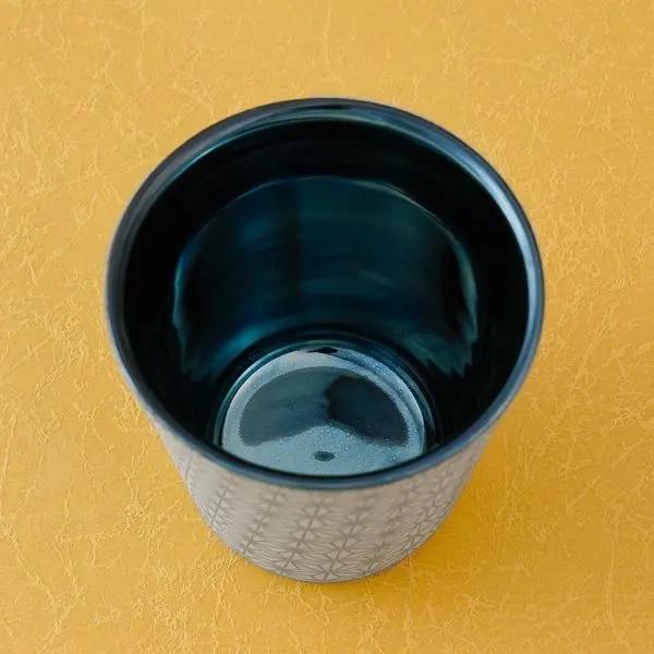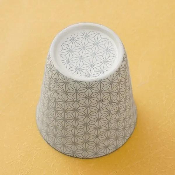 This beautiful Japanese rock cup features a traditional Asa-no-ha pattern, a geometric motif with a rich history dating back to the Kamakura period. The bold, intricate pattern, combined with a luxurious silver accent, gives this cup a noble and distinguished look.