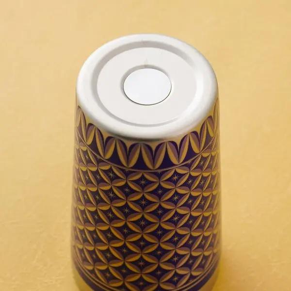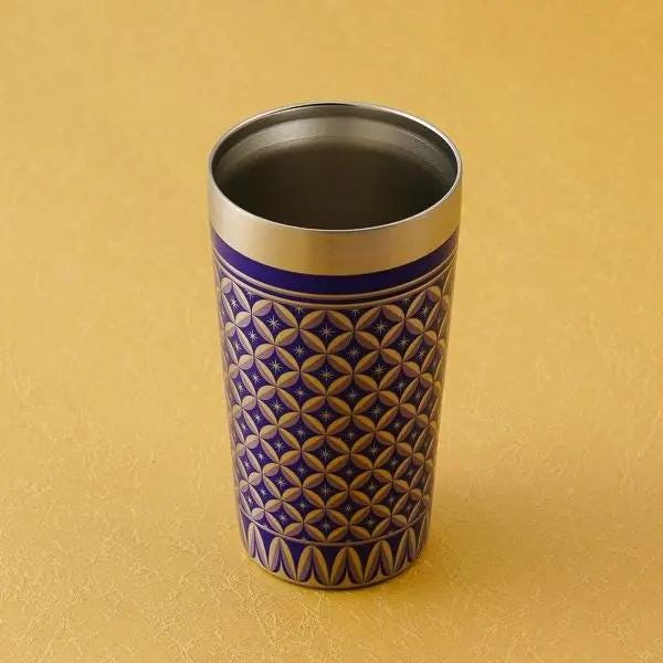 This elegant, double-walled stainless steel tumbler features a traditional Japanese Shippo pattern. The pattern of interlocking circles is considered highly auspicious, symbolizing harmony, peace, and good fortune, making it a perfect gift for any occasion.