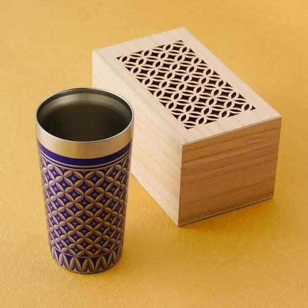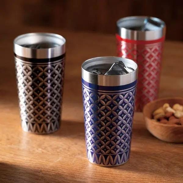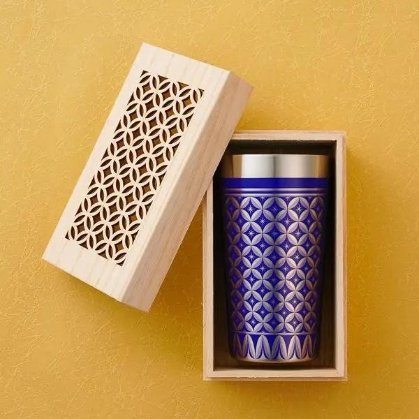 Japanese Kitchen > rrivalsJapaneseKitchen > Brand New Japanese Shippo Pattern Stainless Steel Tumbler, Double-Walled Insulated Glass, Elegant Gift with Wood Box, Made in Japan