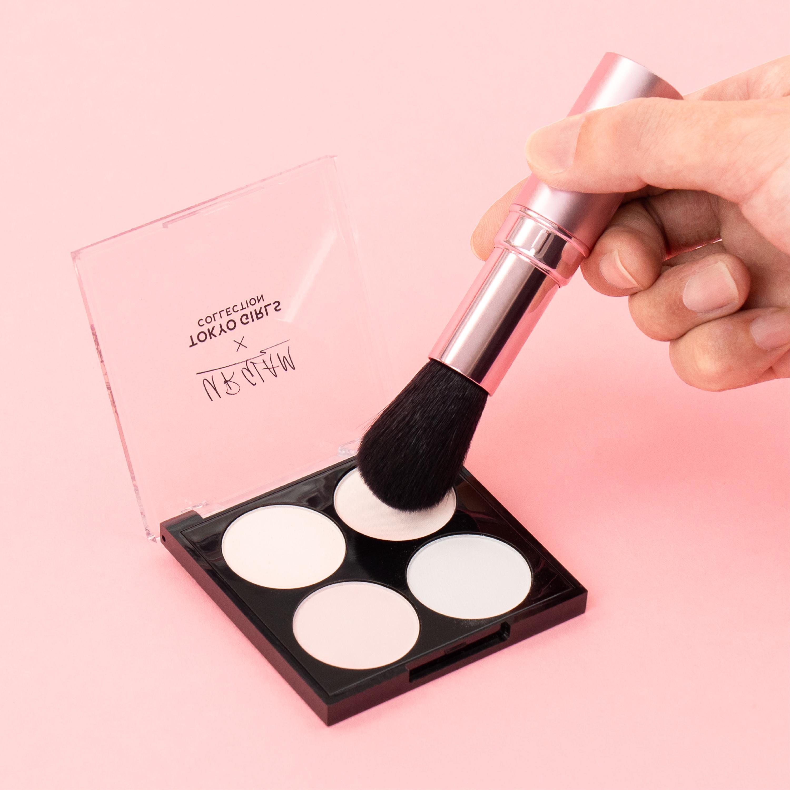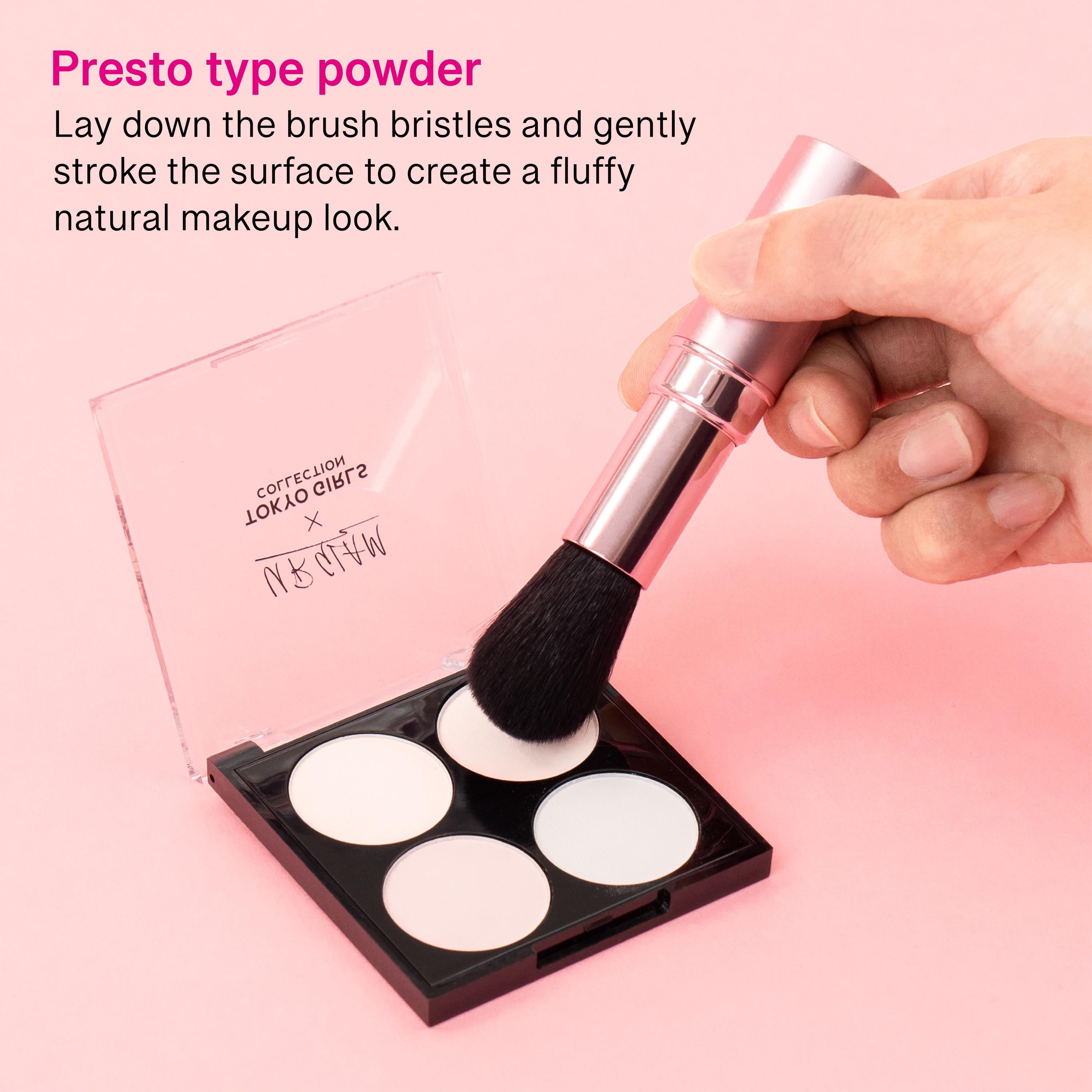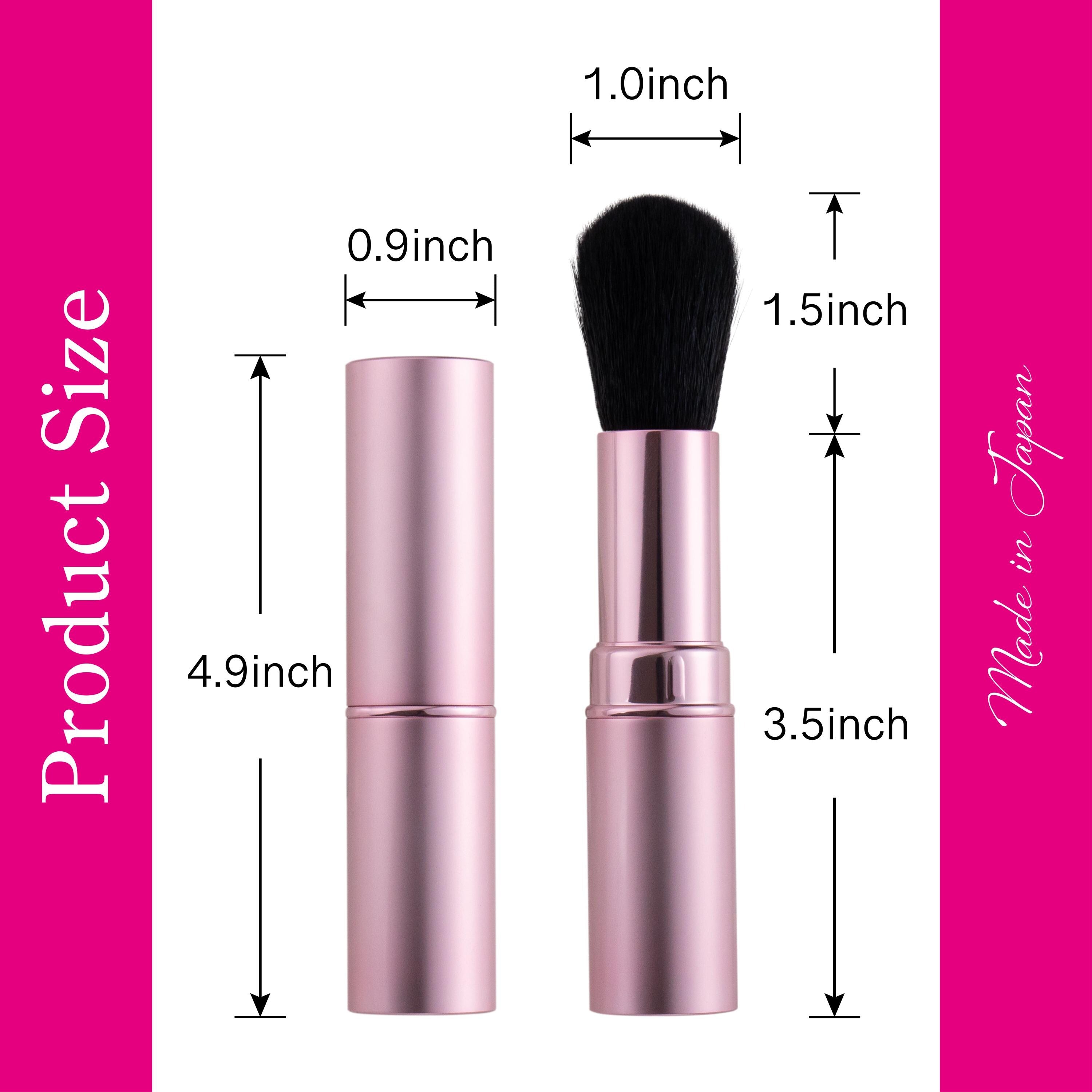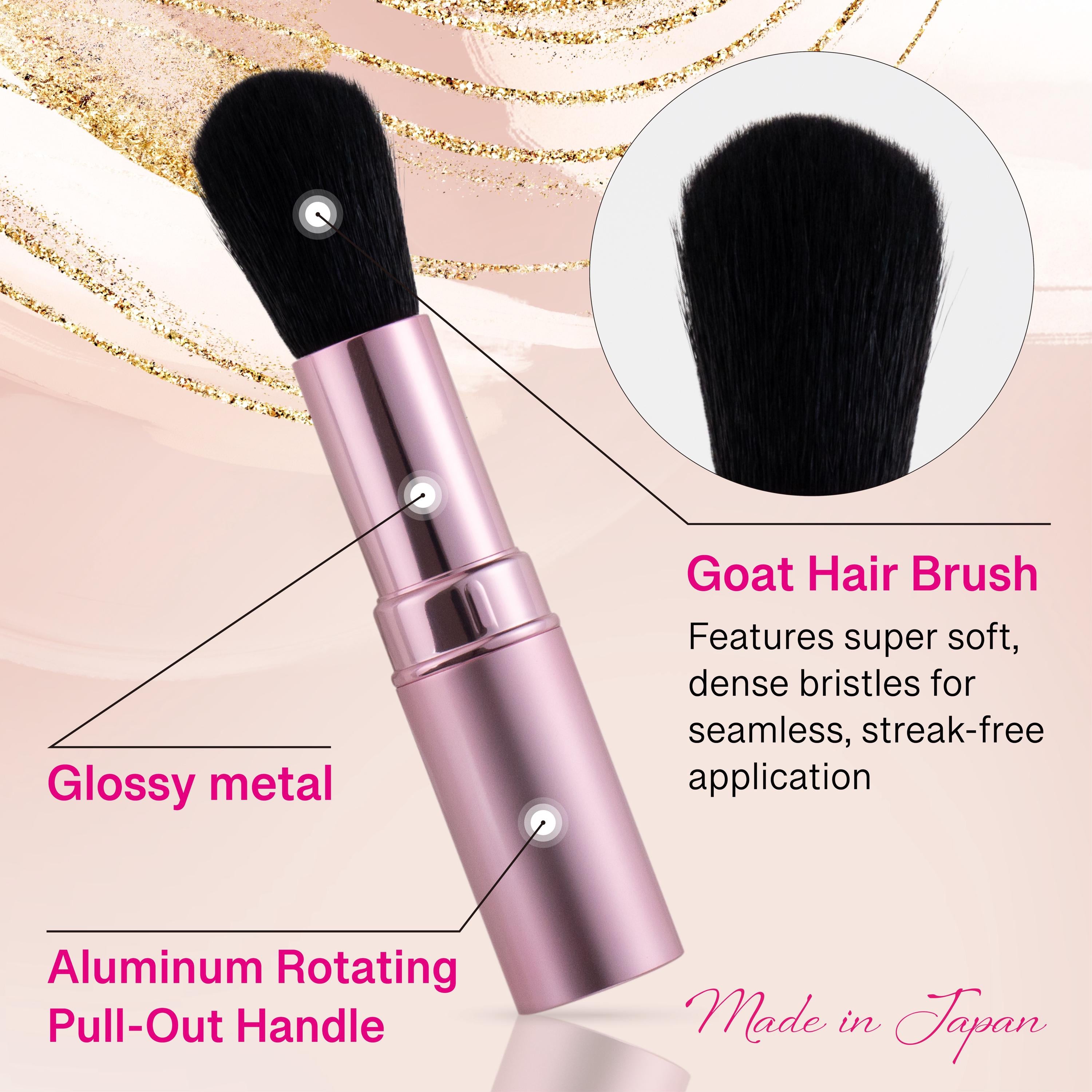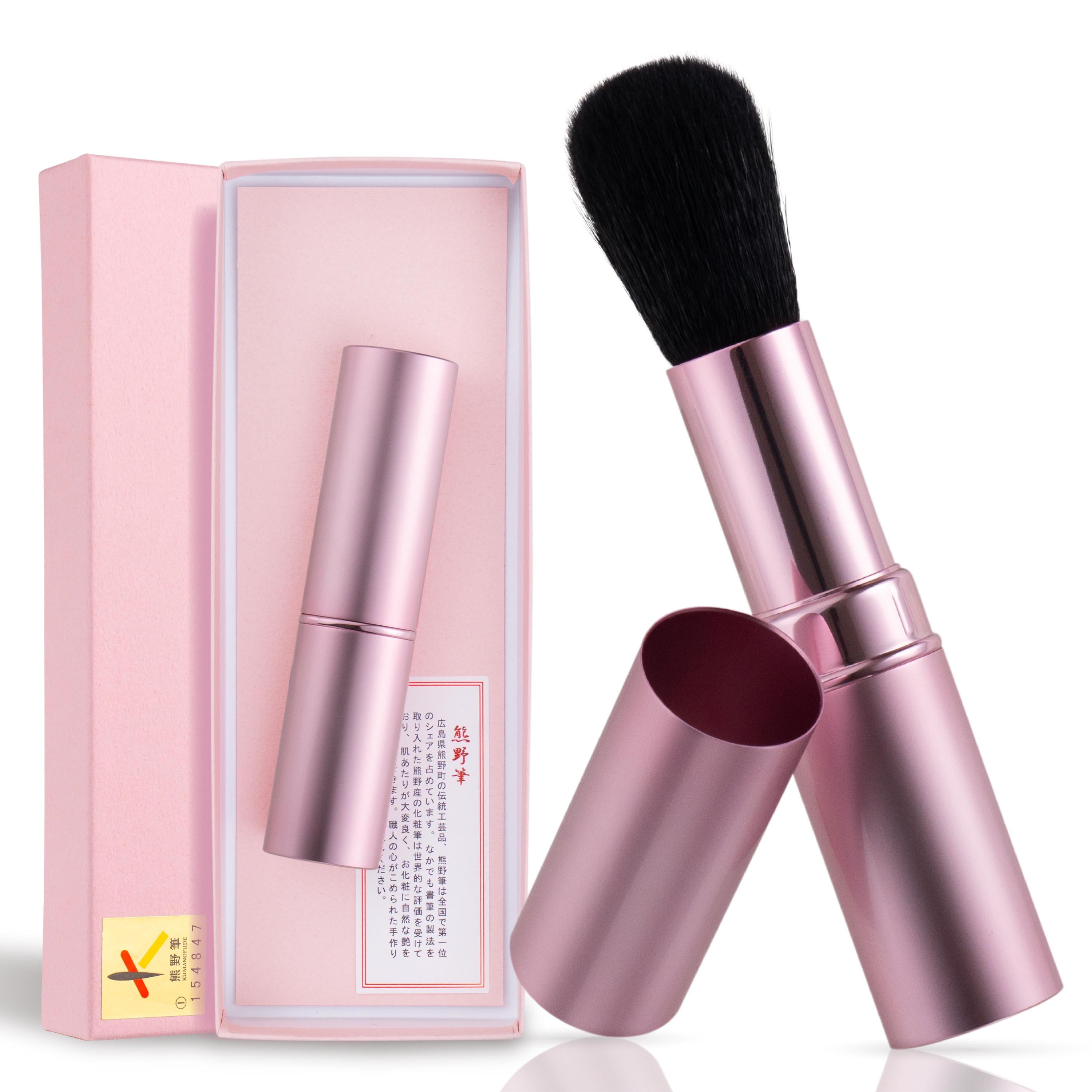 Kumano Portable Makeup Brush - Handmade Japanese Retractable Blush Brush with Goat Hair & Metallic Handle