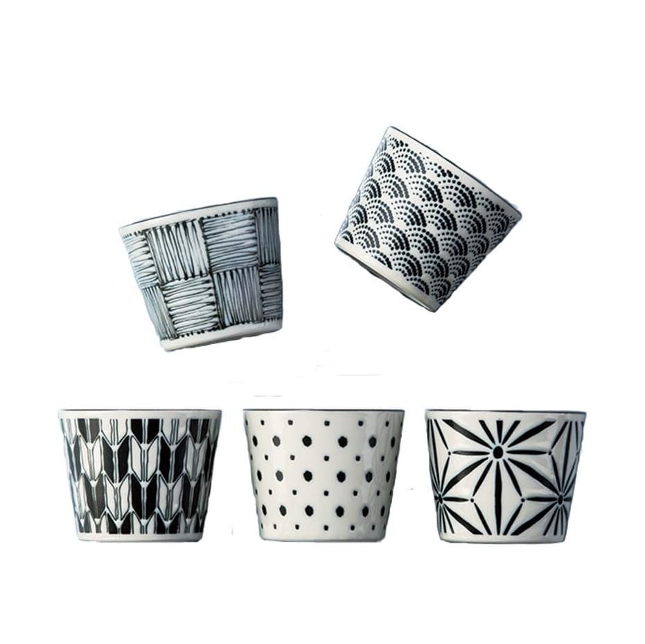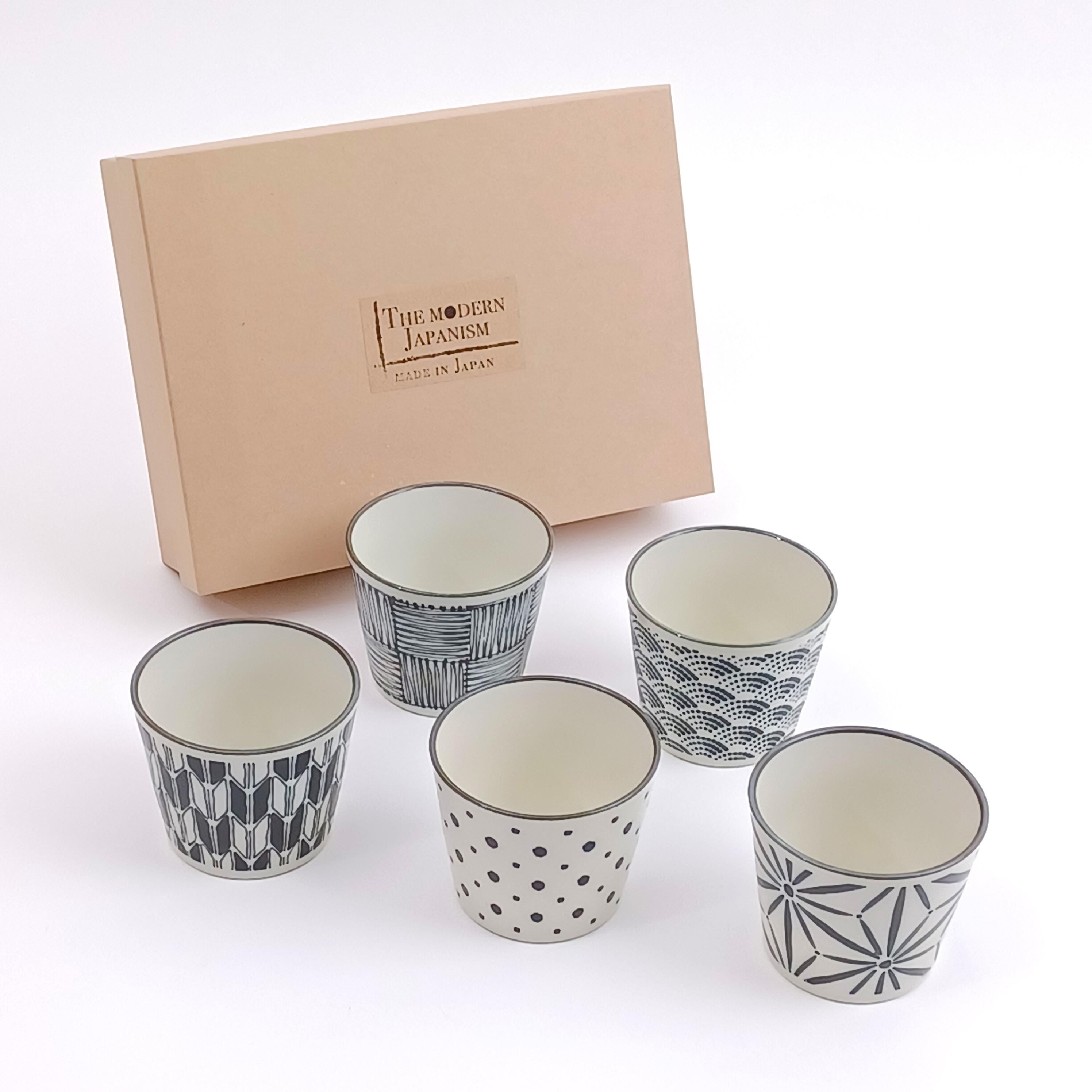 Made in Japan aesthetic Awasaka porcelain Komon Soba Choco Cup Collection 5 pcs for Gift Birthday Thanksgiving Wedding| Forgot Souvenir