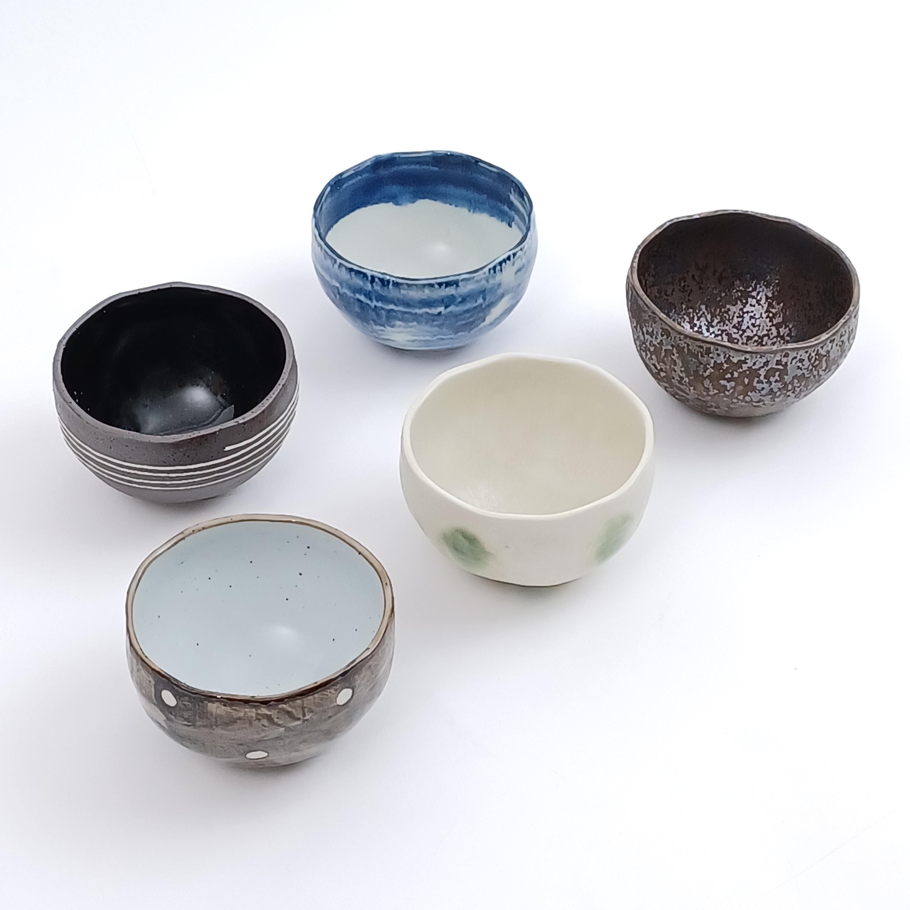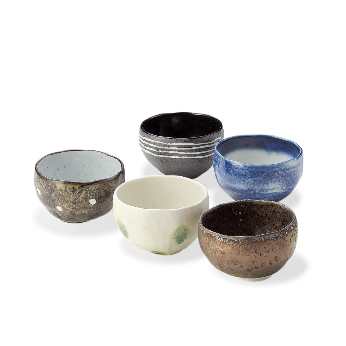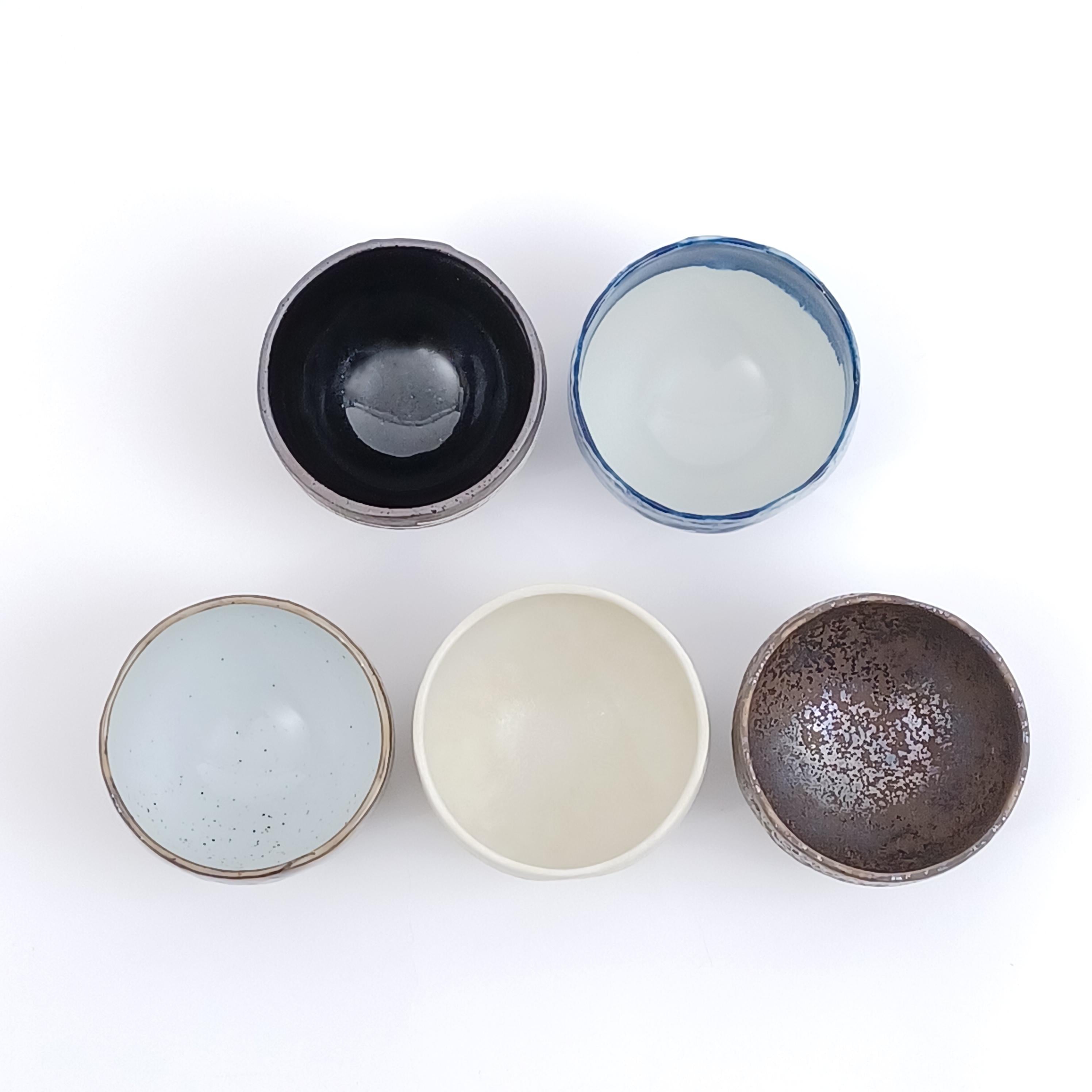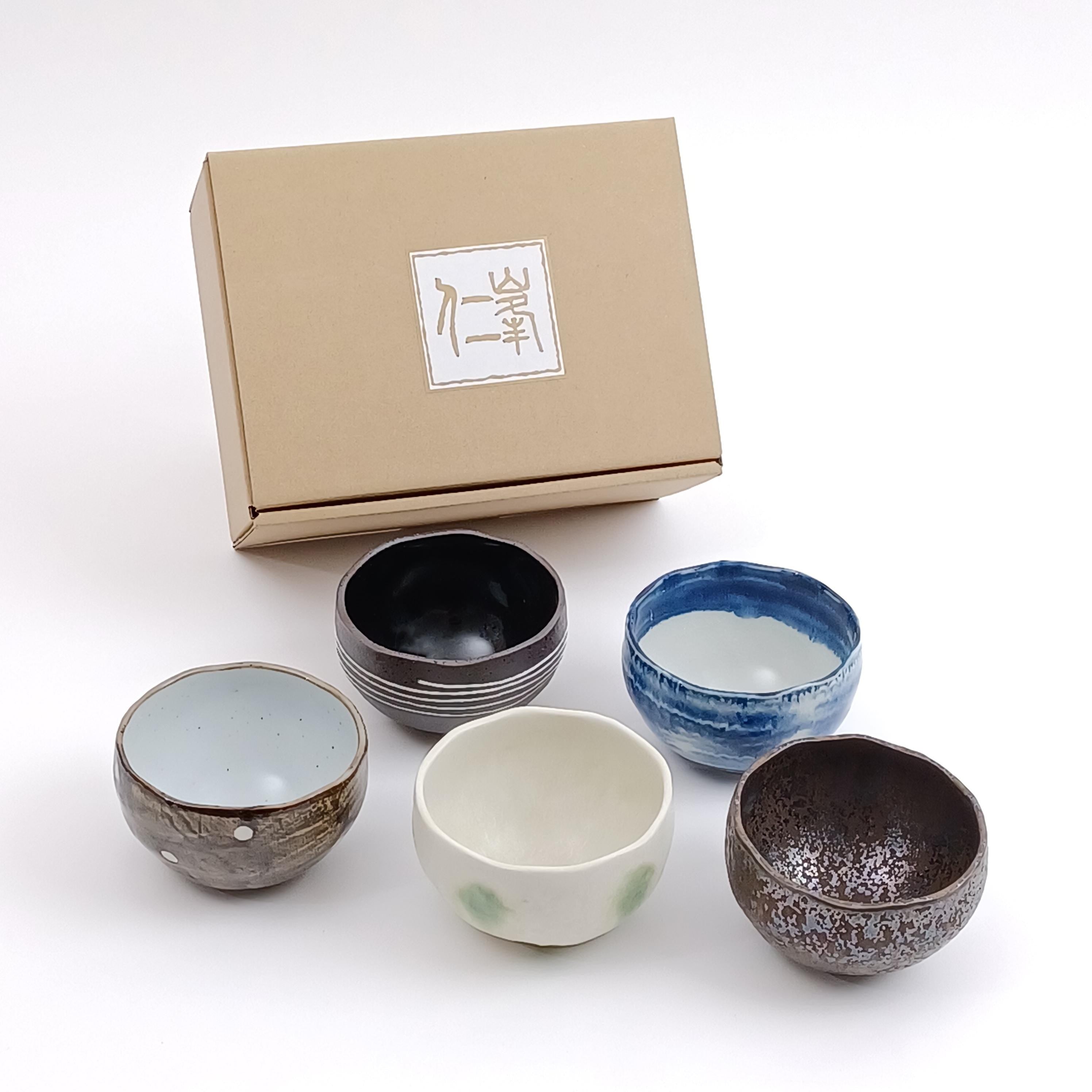 Made in Japan Japanese Awasaka porcelain Wabisabi Tea Bowl Collection 5 pcs for Gift Birthday Thanksgiving Wedding| Forgot Souvenir
