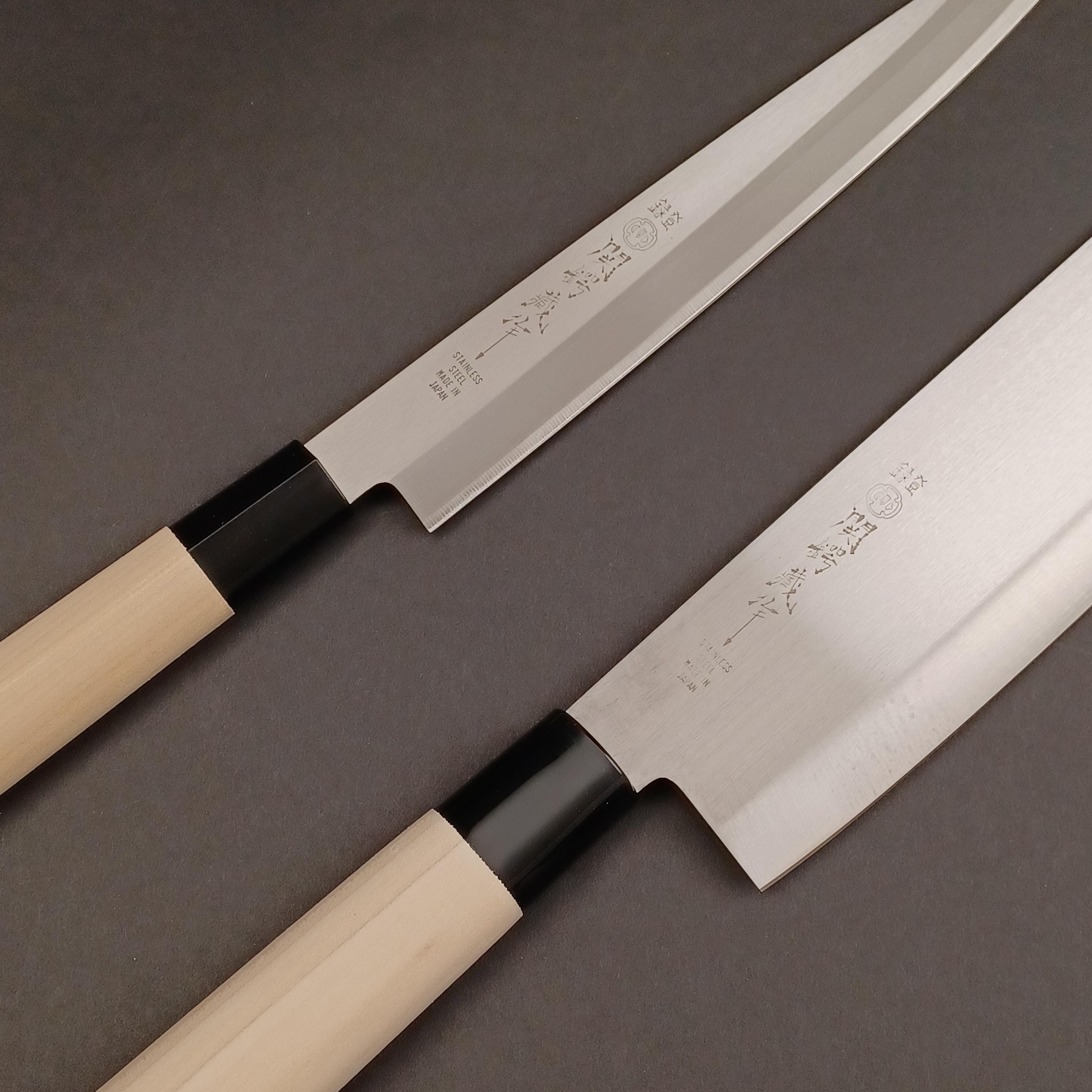 Sashimi (Yanagiba) – Traditional long, thin blade designed specifically for slicing raw fish and preparing sashimi with clean, smooth cuts.