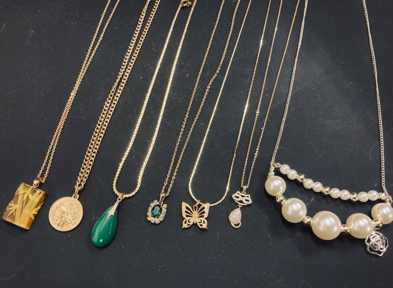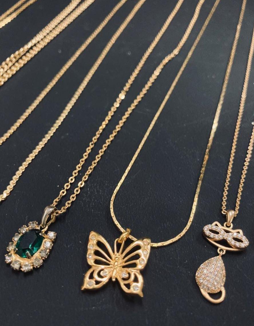 Used 7 Pcs Gold Color Necklace Lot Mixed Motifs Chain Length 15.7-23.6in Pendant Set Costume Jewelry Accessory Women