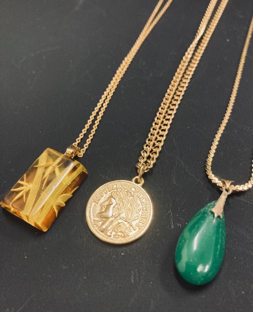 This is a set of 7 necklaces with various appealing motifs! ✨ This set includes gold-colored necklaces, ranging from elegant designs to gorgeous motifs, that will brilliantly enhance your everyday wear.