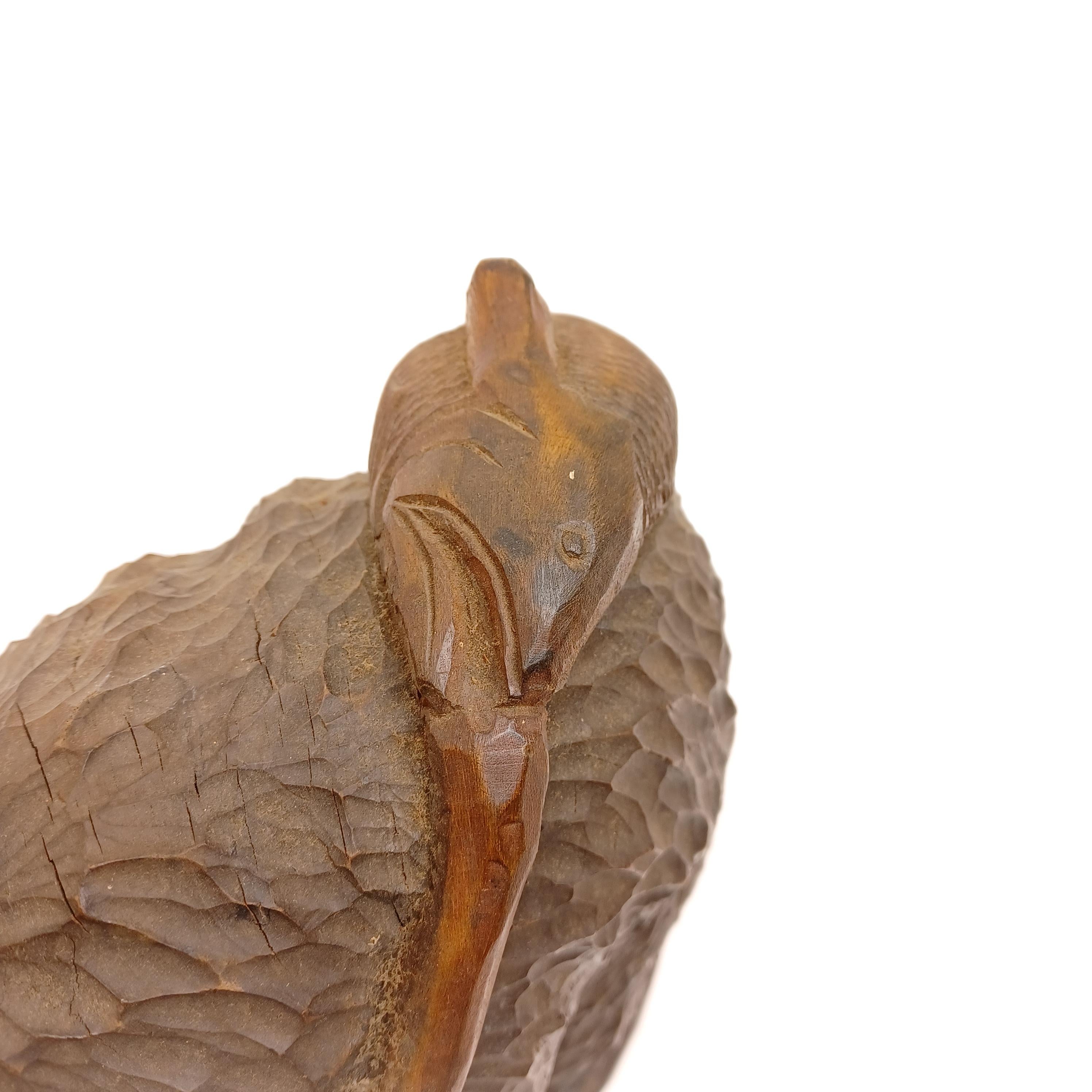 Made from natural wood with visible chisel marks, the sculpture showcases detailed carving and expressive craftsmanship. A unique decorative piece for collectors of folk art, Japanese antiques, or animal-themed figurines.