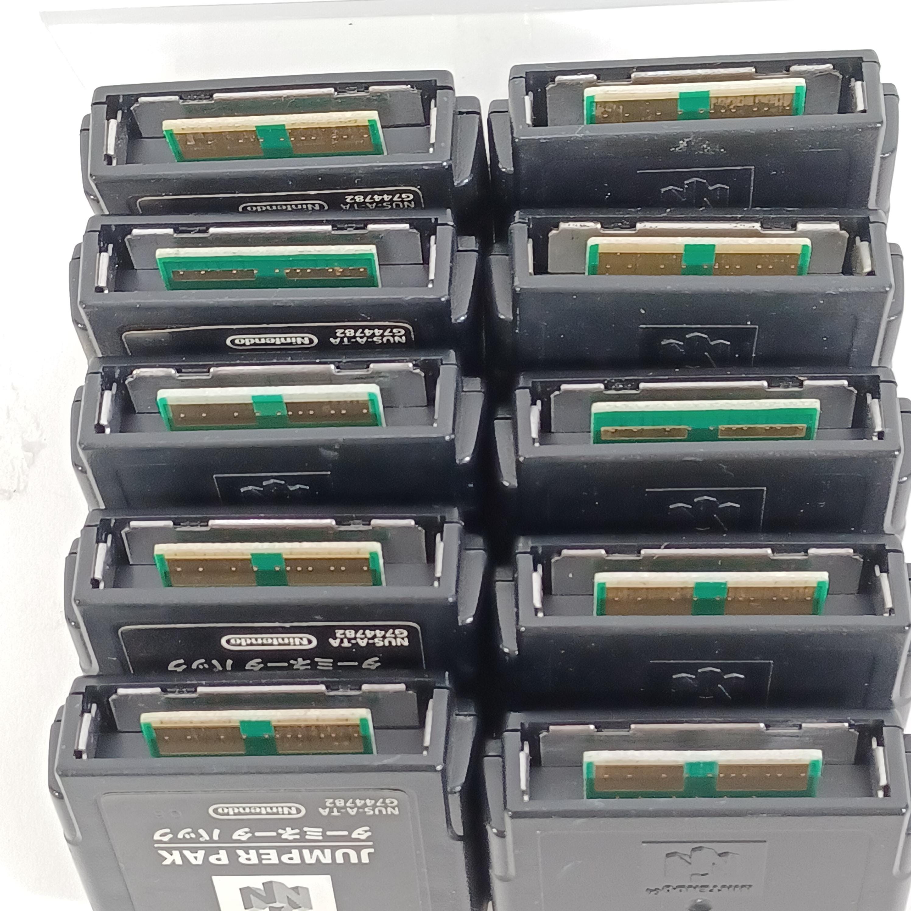 This is a bulk lot containing **10 units** of the official Nintendo 64 (N64) Jumper Pak (NUS-008). The Jumper Pak is essential for operating the N64 console when the Expansion Pak is not installed.