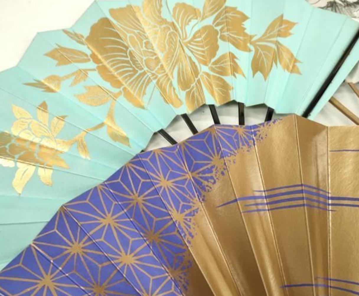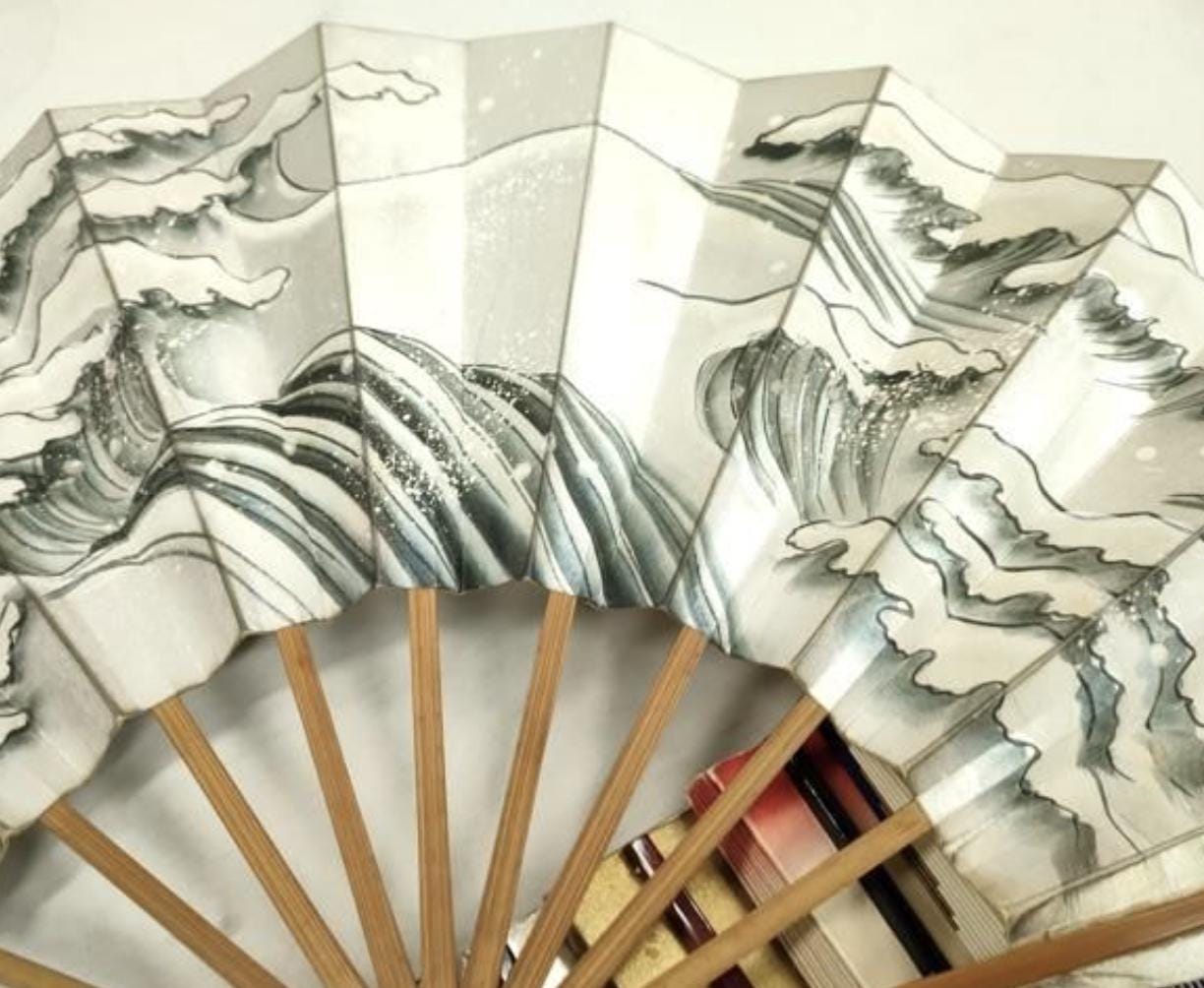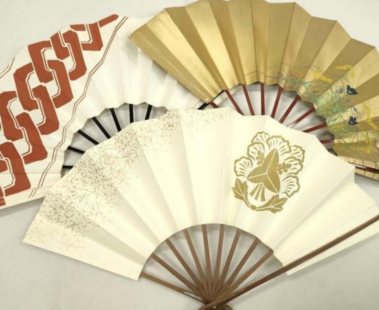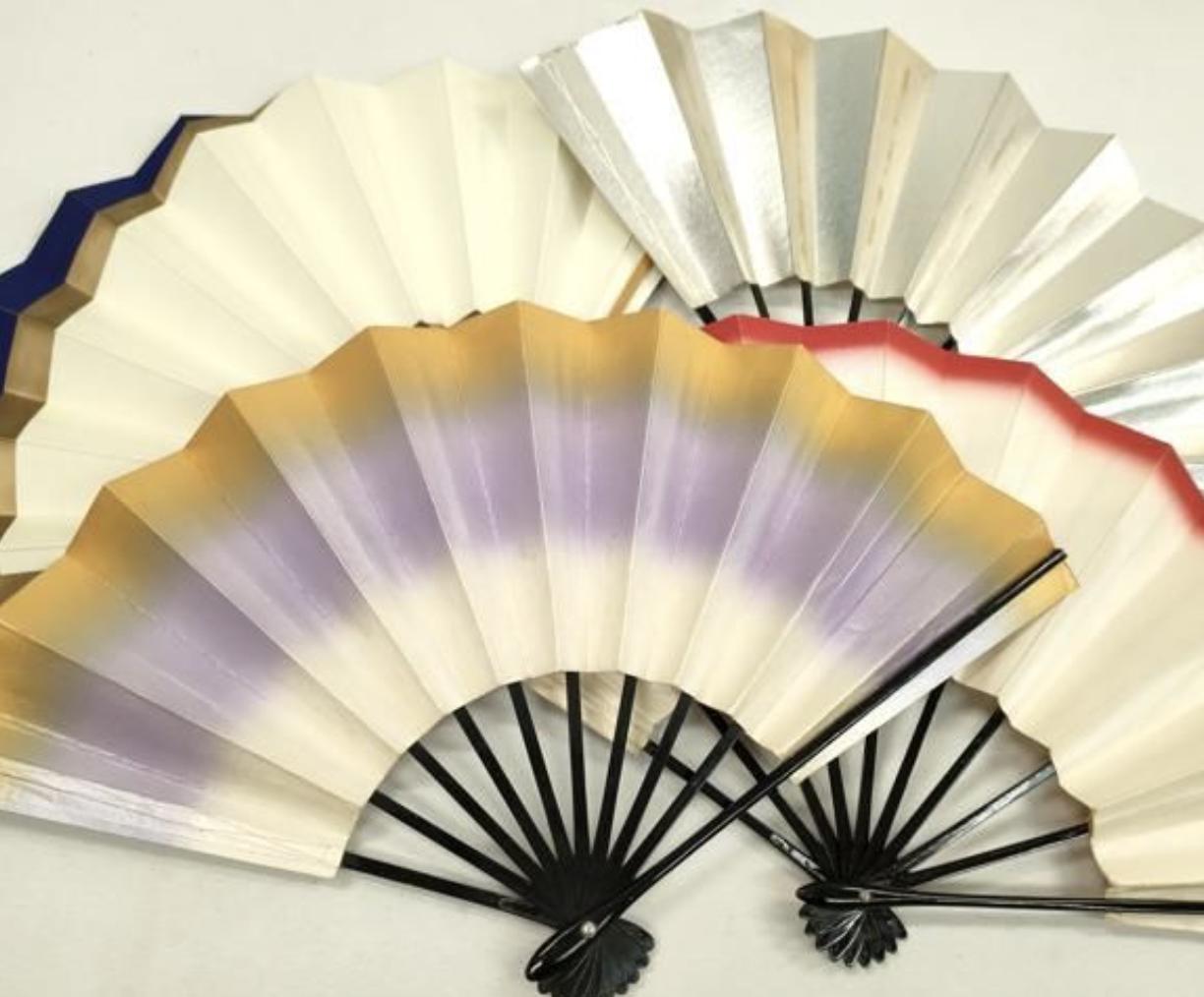 This listing offers a beautiful lot of 10 used Japanese folding fans (Sensu), mainly consisting of Mai-ogi (Japanese dance fans). These tools are central to Japanese classical dance (Nihon Buyo).