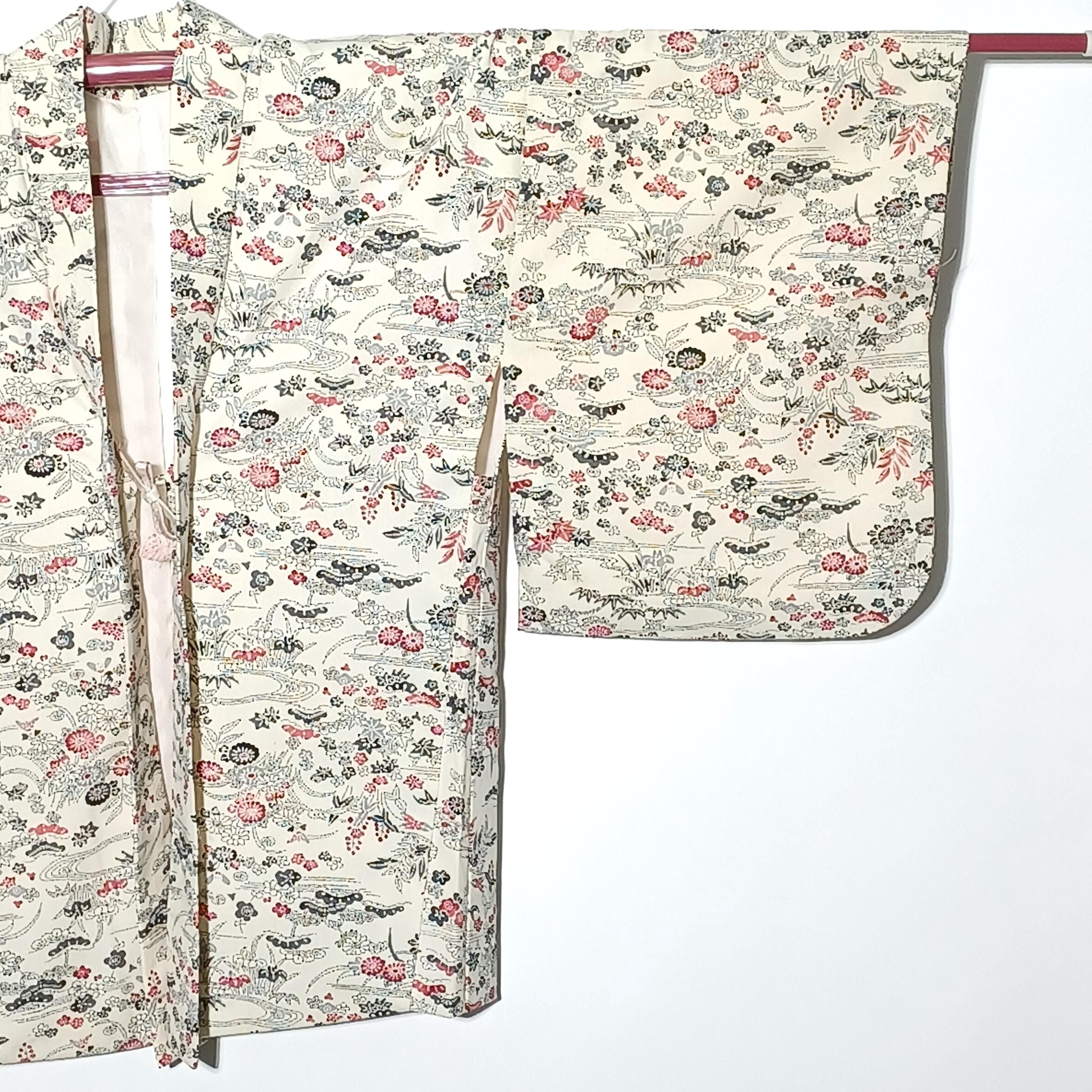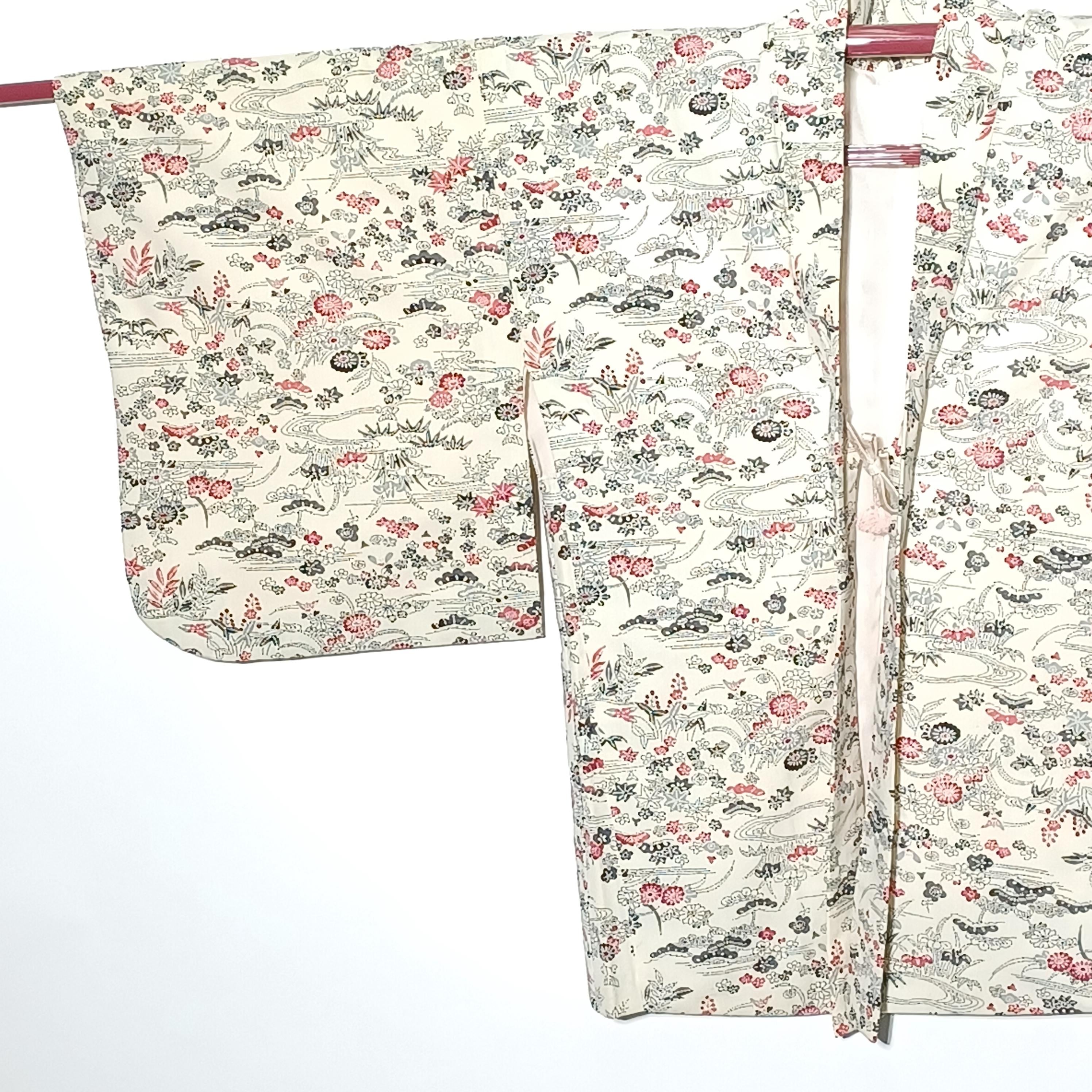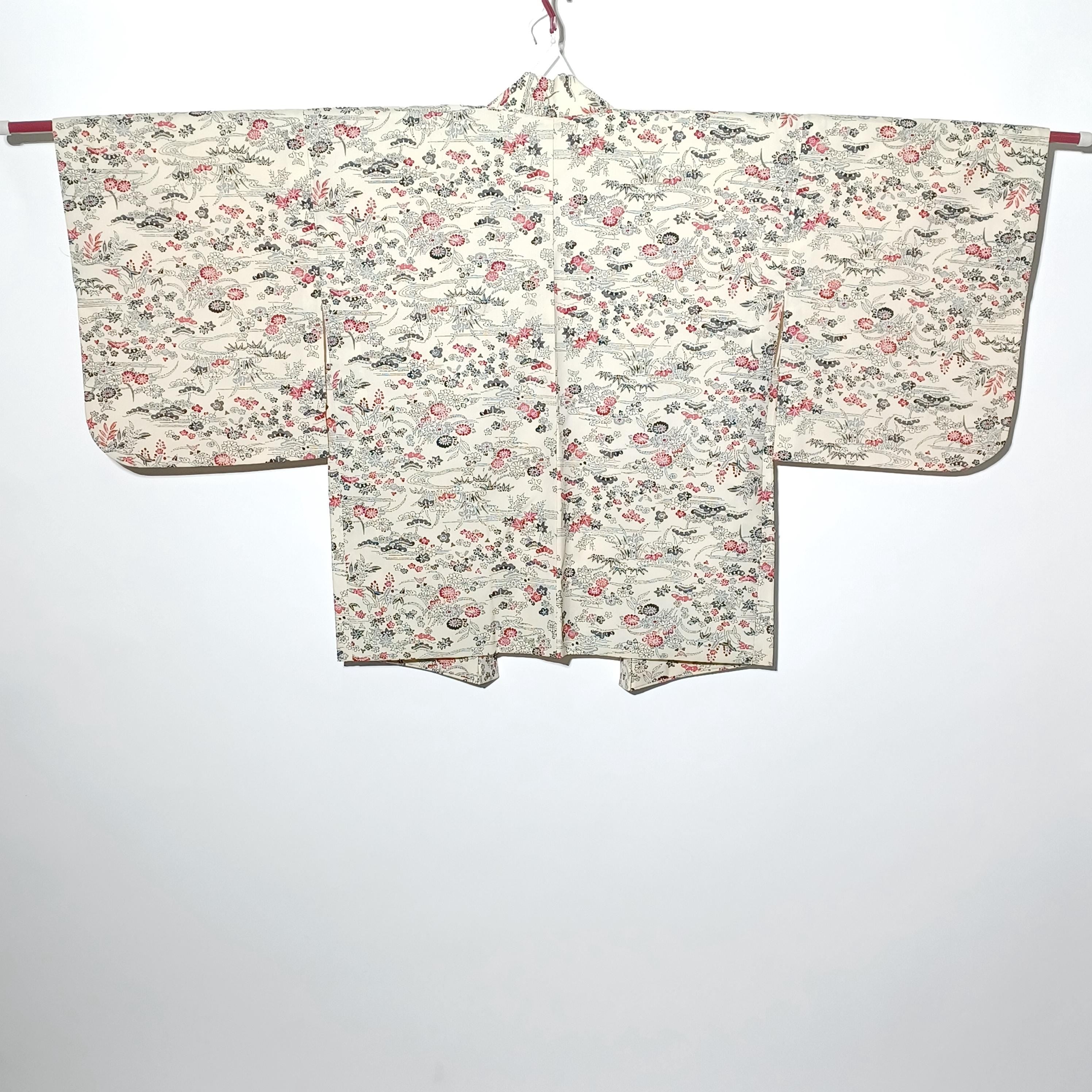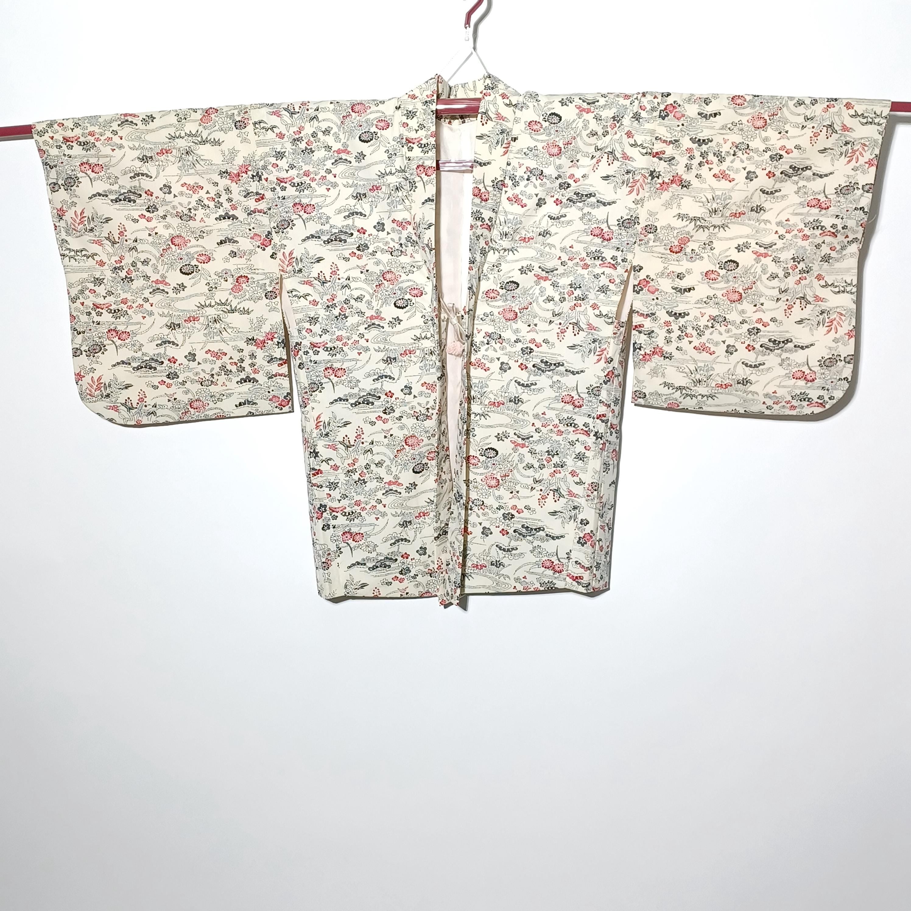Used Japanese Kimono Coat Haori Jacket Traditional Outerwear Vintage Silk Height 30 in