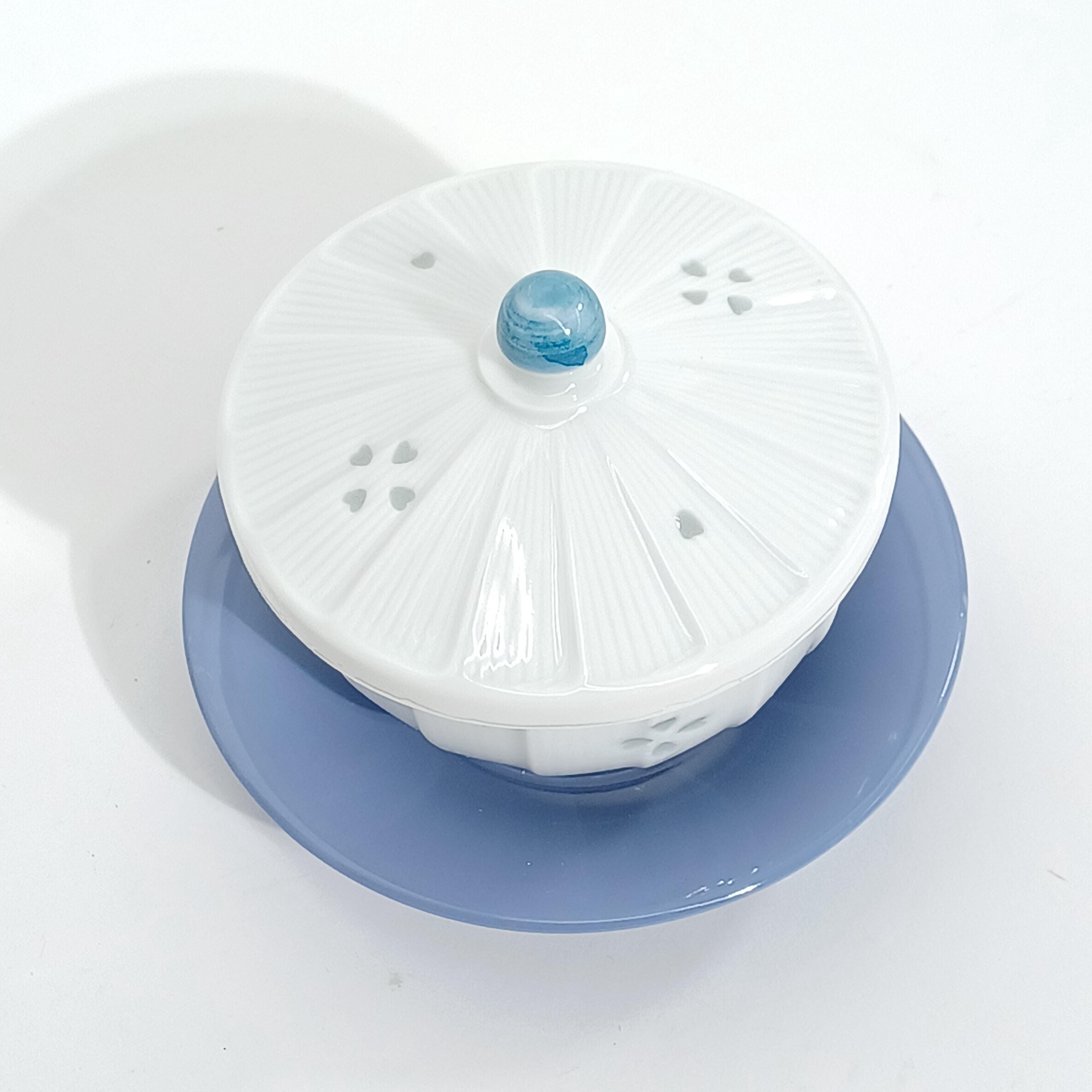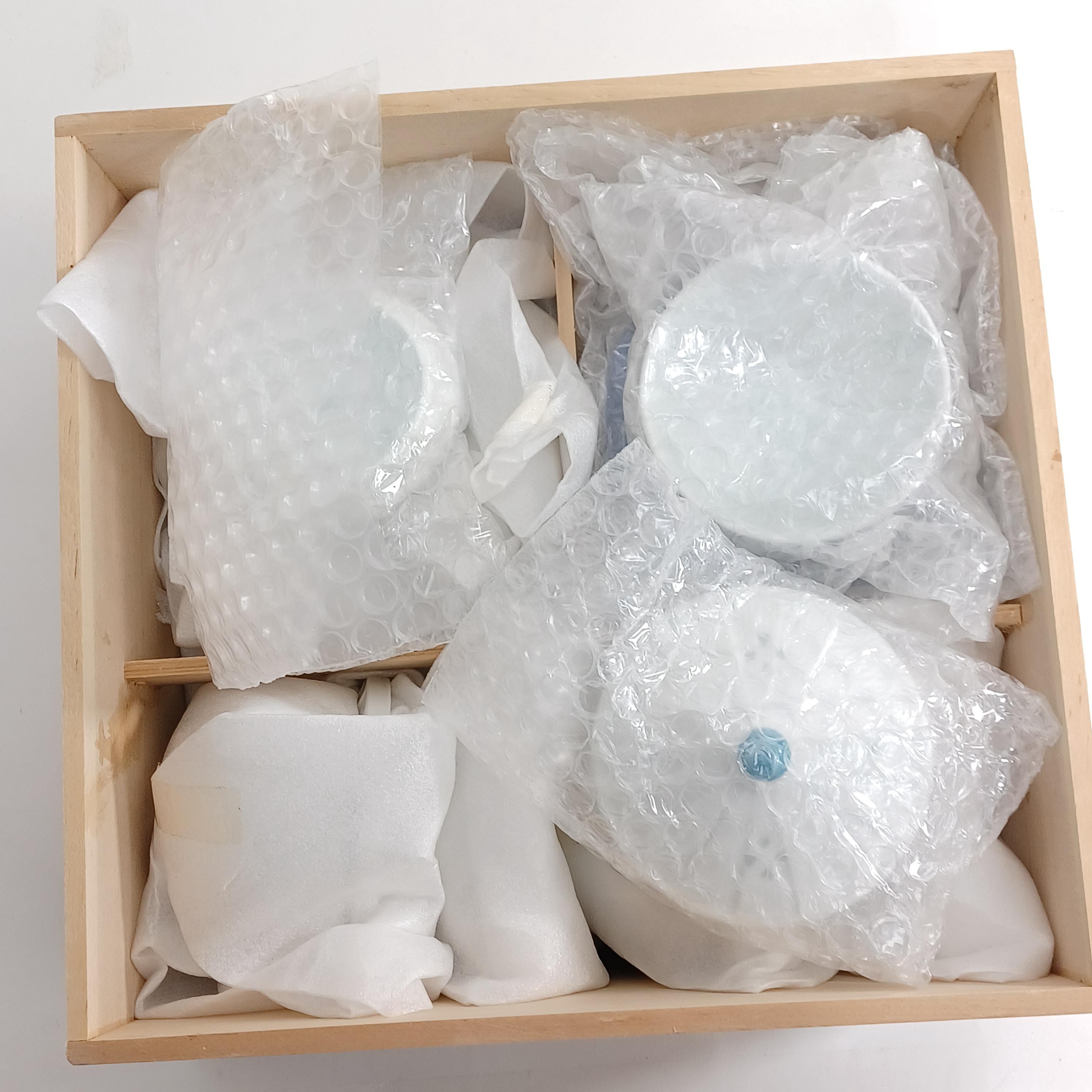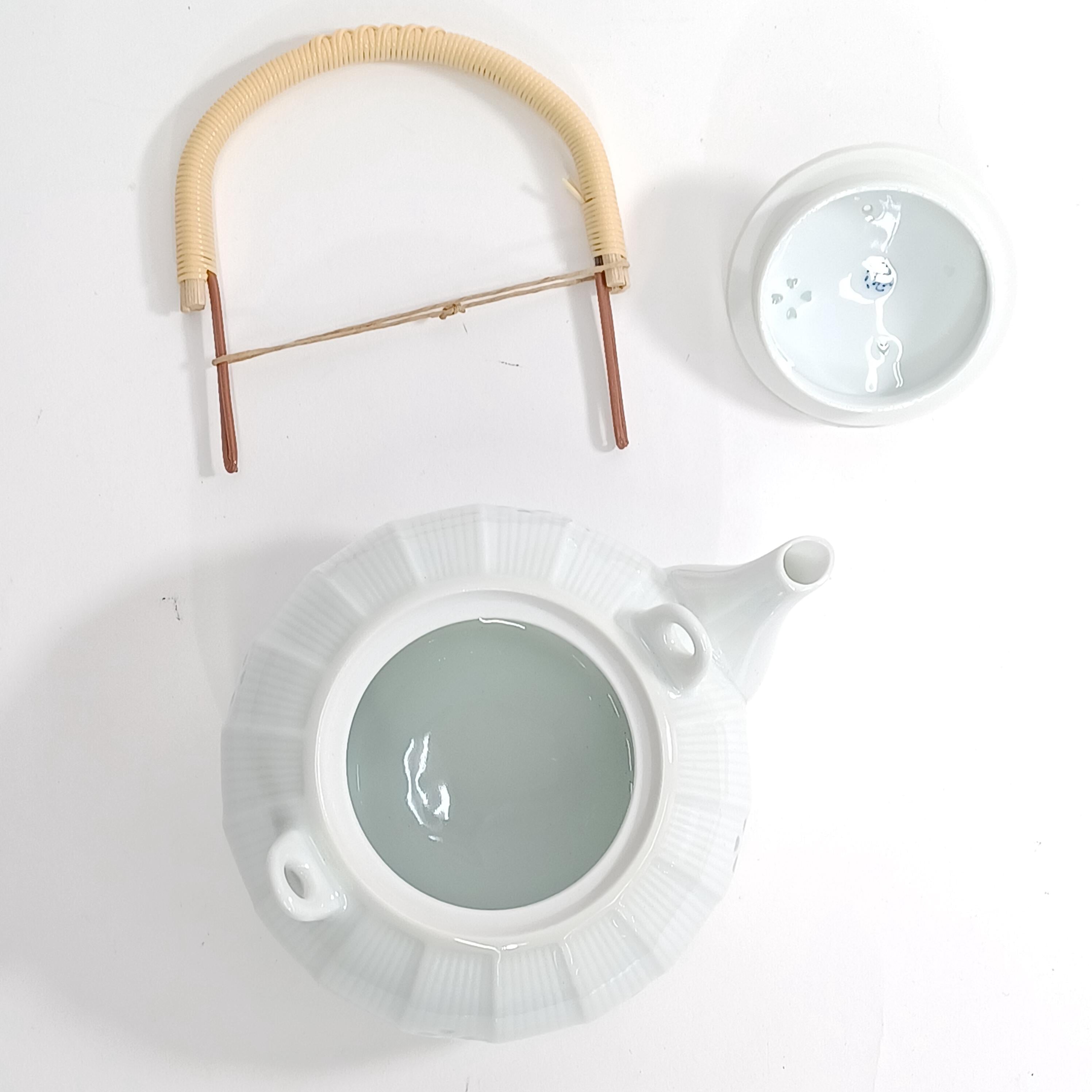 Used Japanese Kyusu Teapot & 5 Yunomi Teacups Set White Blue Vintage Pottery