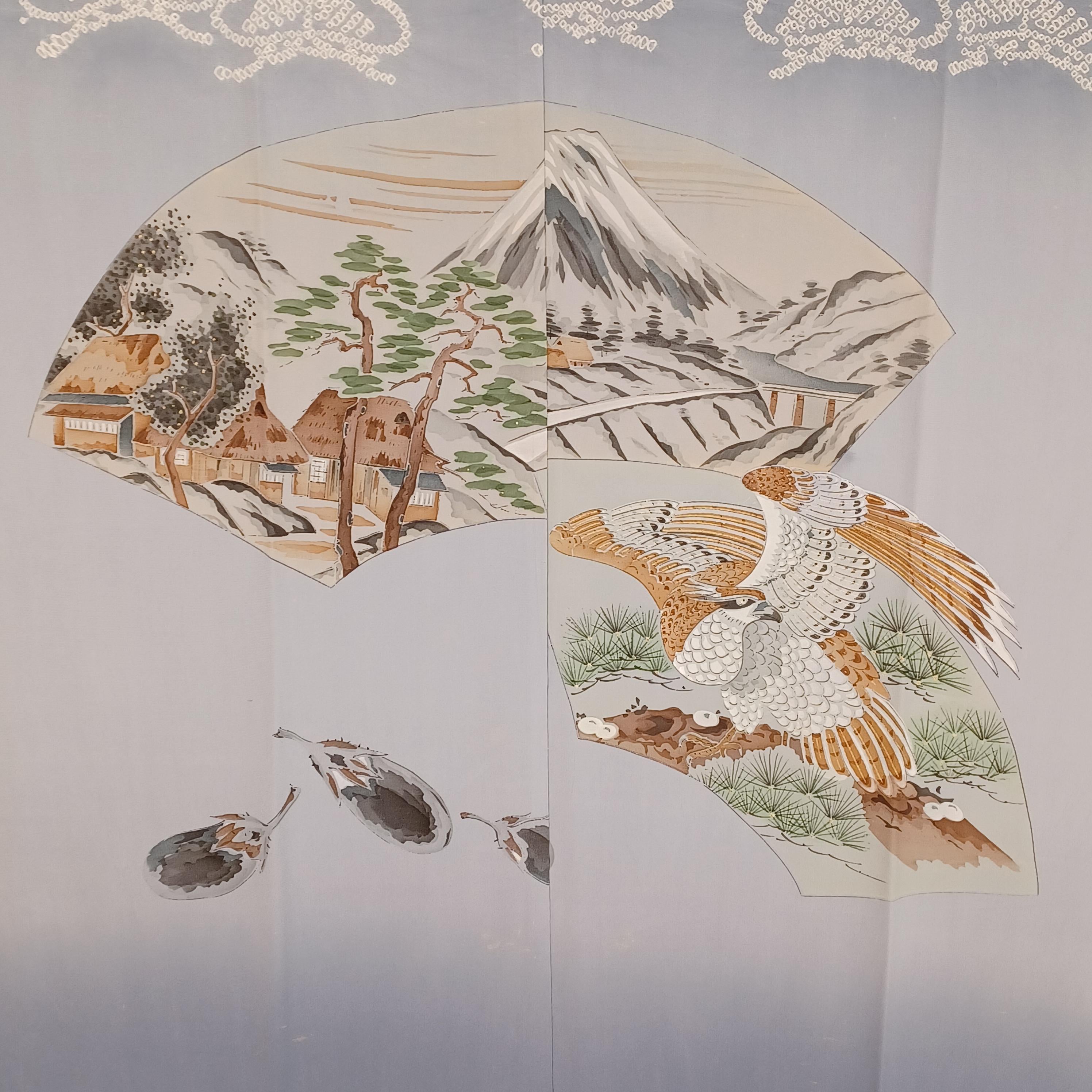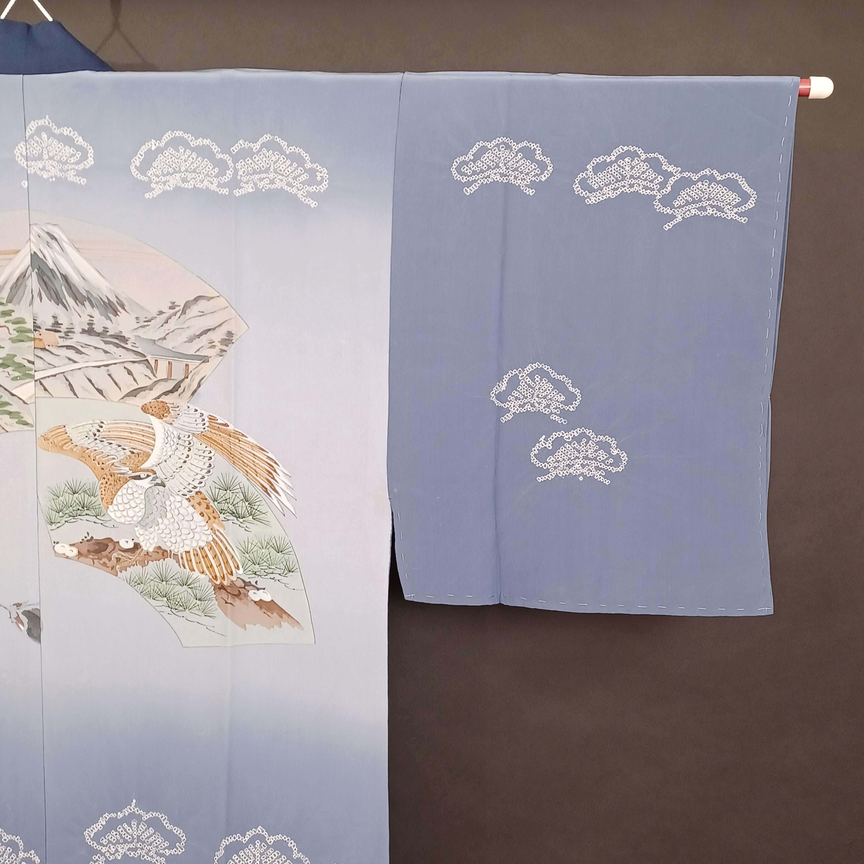 Men's Juban (Undergarment Kimono) – 100% Silk – Mt. Fuji, Pine, and Hawk Motif