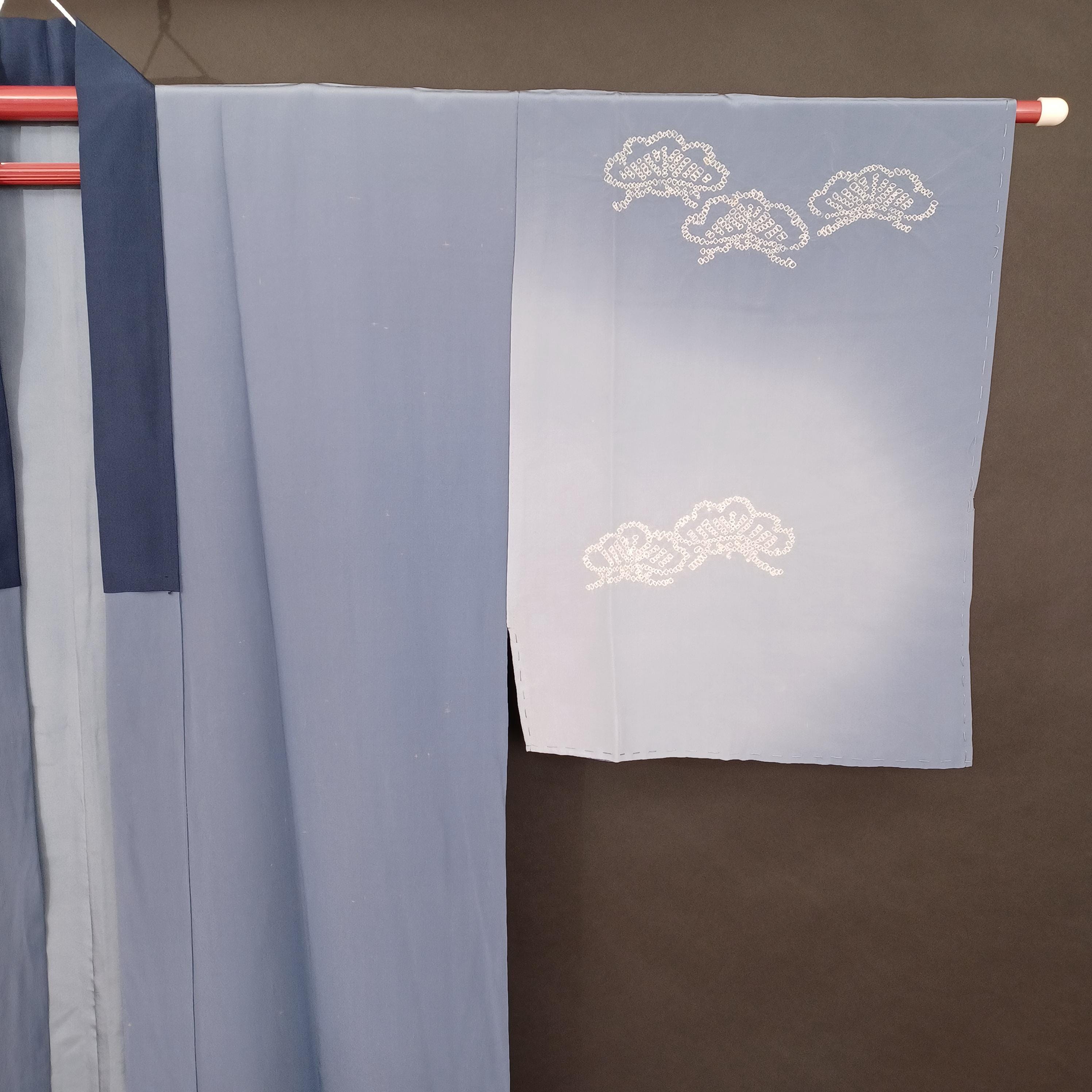 Used Japanese Men’s Juban Kimono 100% Silk with Mt. Fuji, Hawk, and Pine Design – Vintage Traditional Undergarment with Gradient Blue Base