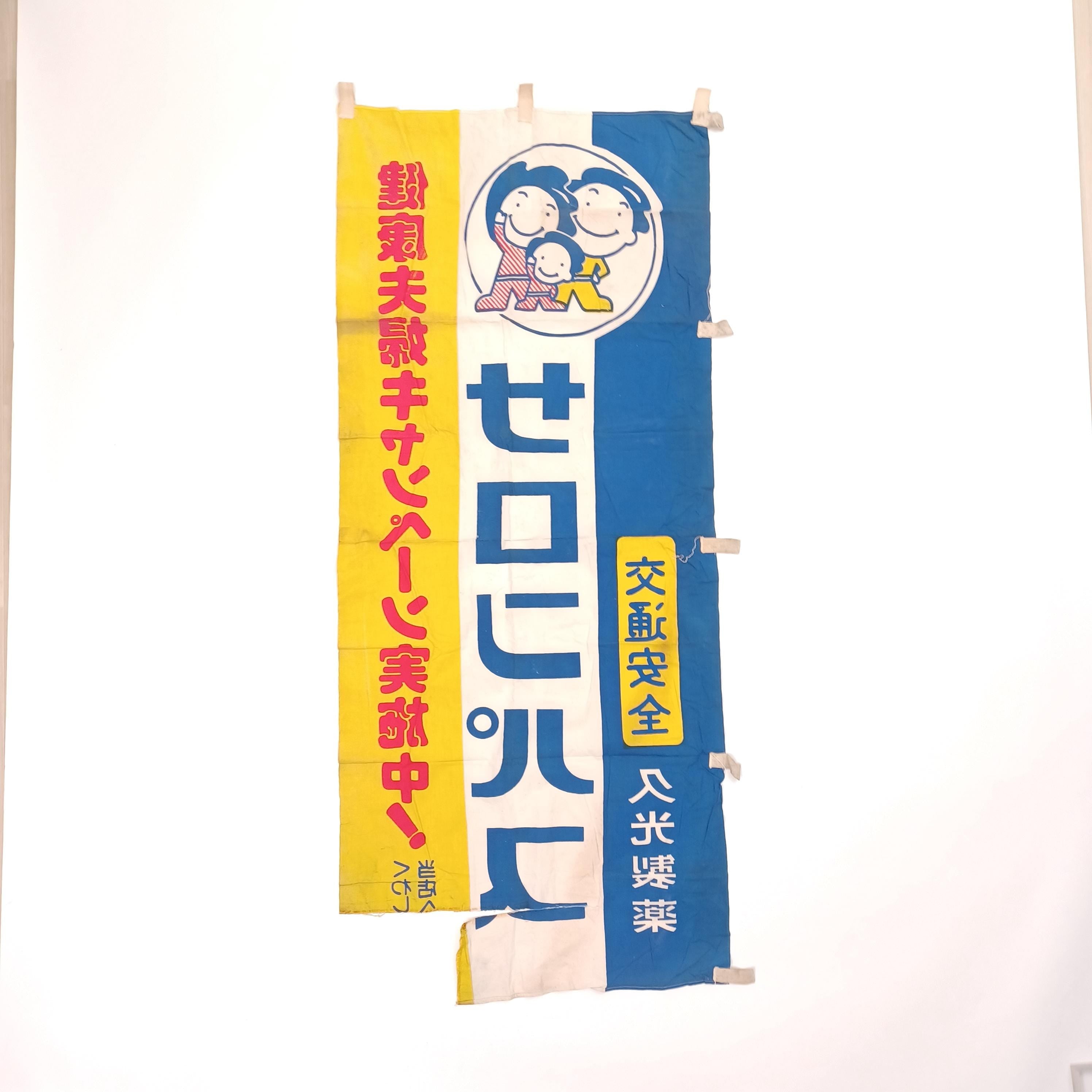 Used Japanese Nobori Banner Vintage Fabric Drug promotion 64 inch Made in Japan