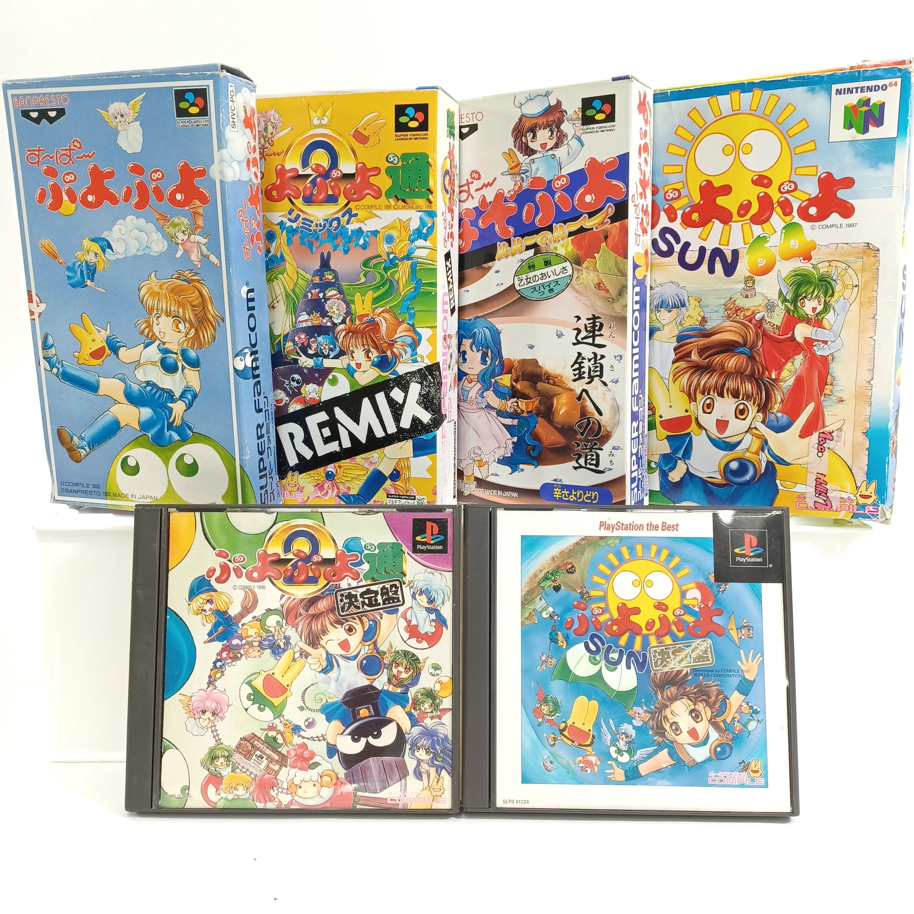 Used Japanese Puyo Puyo Game Lot 6pcs Super Famicom N64 PS1 Software Bundle Tested Retro Video Games