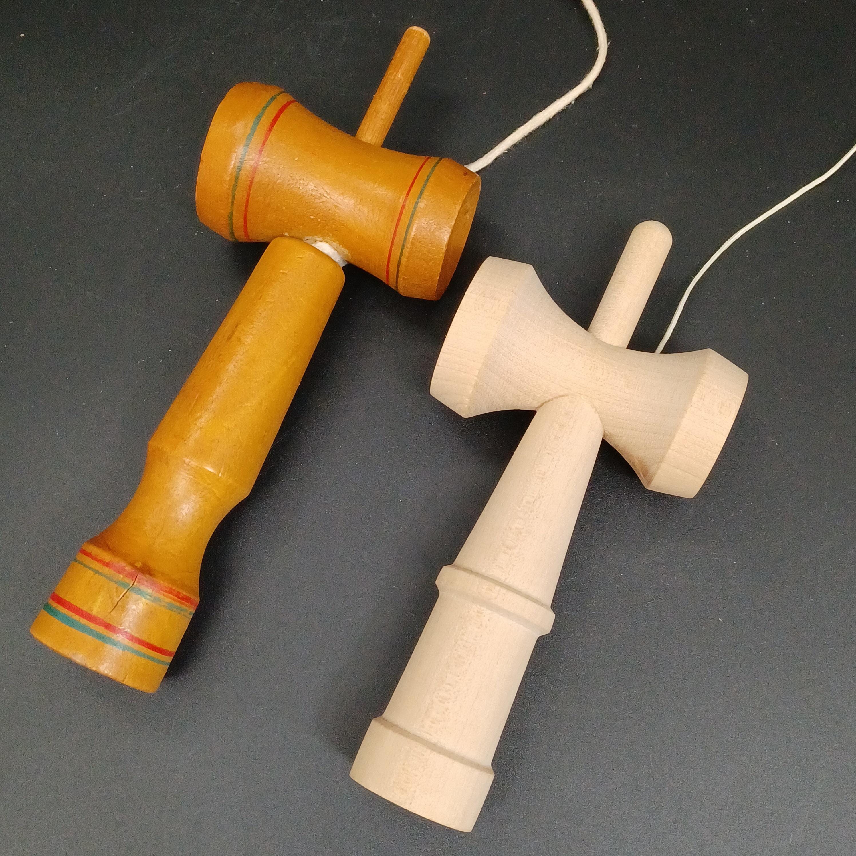 Used Kendama Japanese Vintage Classic Toy 2 pcs Made in Japan 6.7 - 7.5 in
