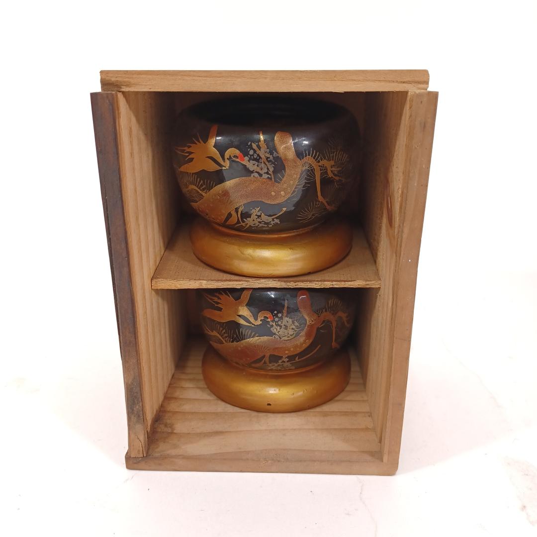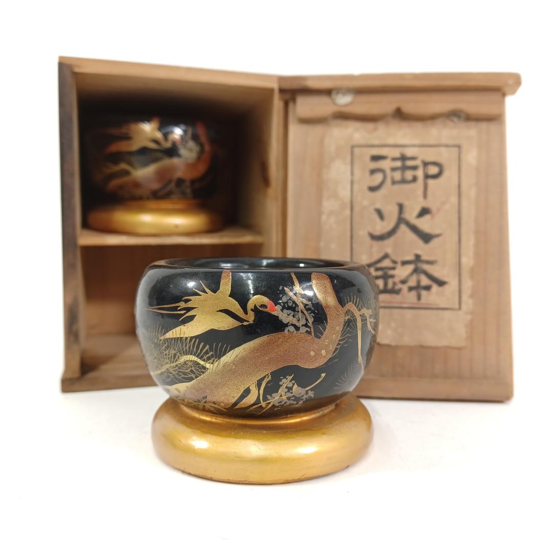 Used Miniature Japanese Hibachi Set of 2 Sho Chiku Bai Crane Motif Porcelain Trinket Jar With Original Tomobako Box Zen Home Decor Antique