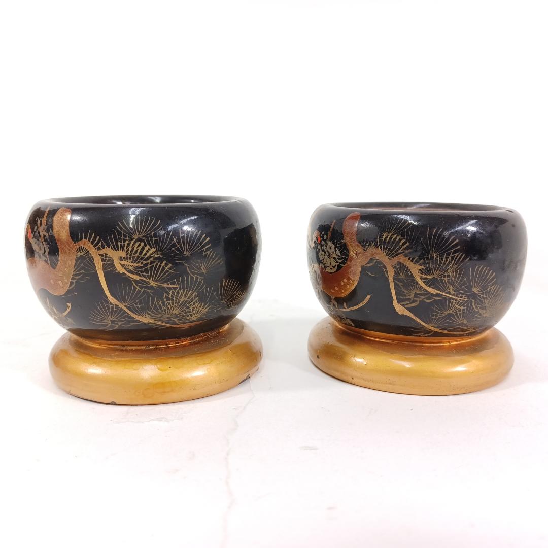This is a masterfully crafted pair of miniature traditional Japanese Hibachi (braziers). Adorned with classical auspicious motifs, these pieces reflect the refined aesthetic of Japanese interior culture. They were traditionally used for delicate tasks such as incense preparation or as high-end decorative ornaments.