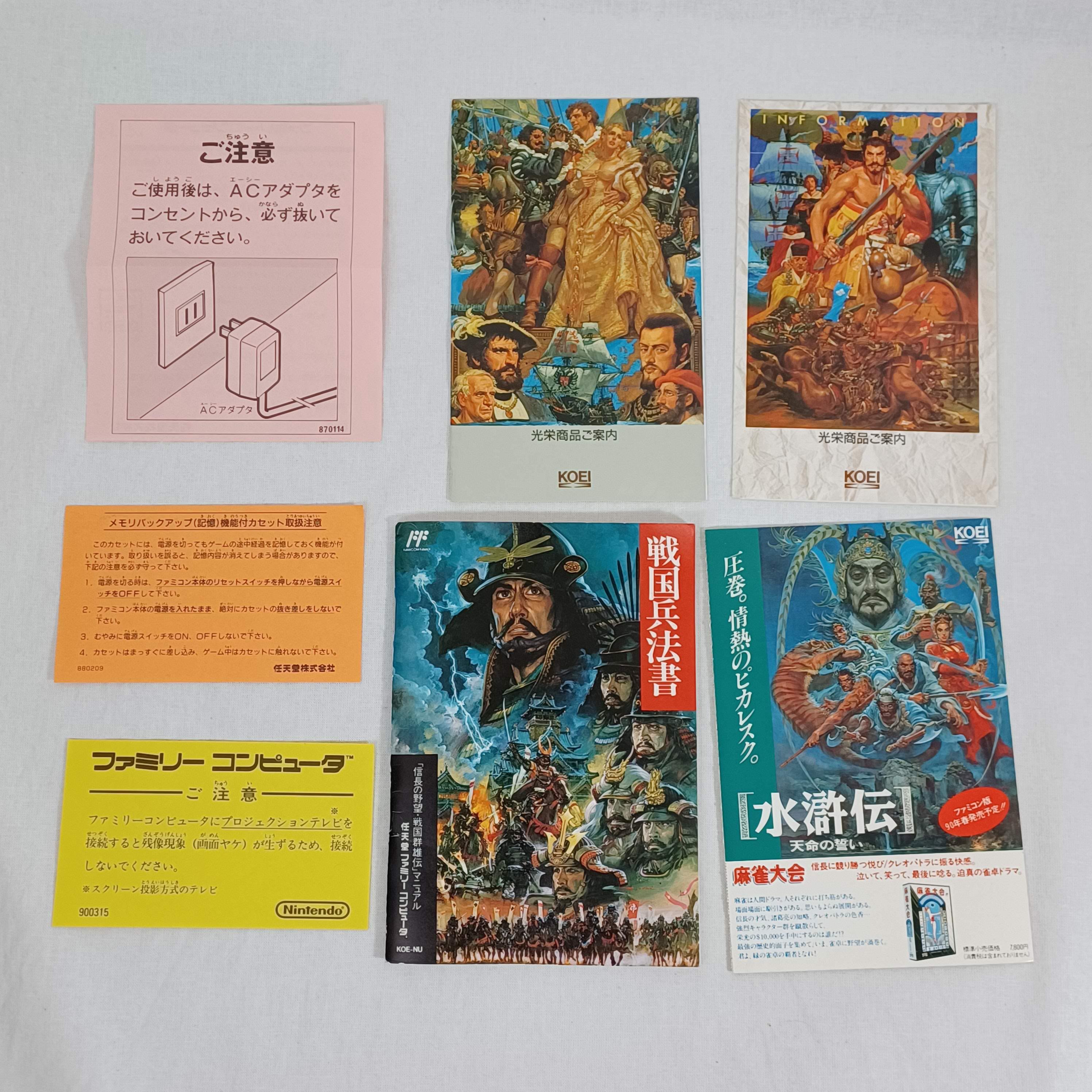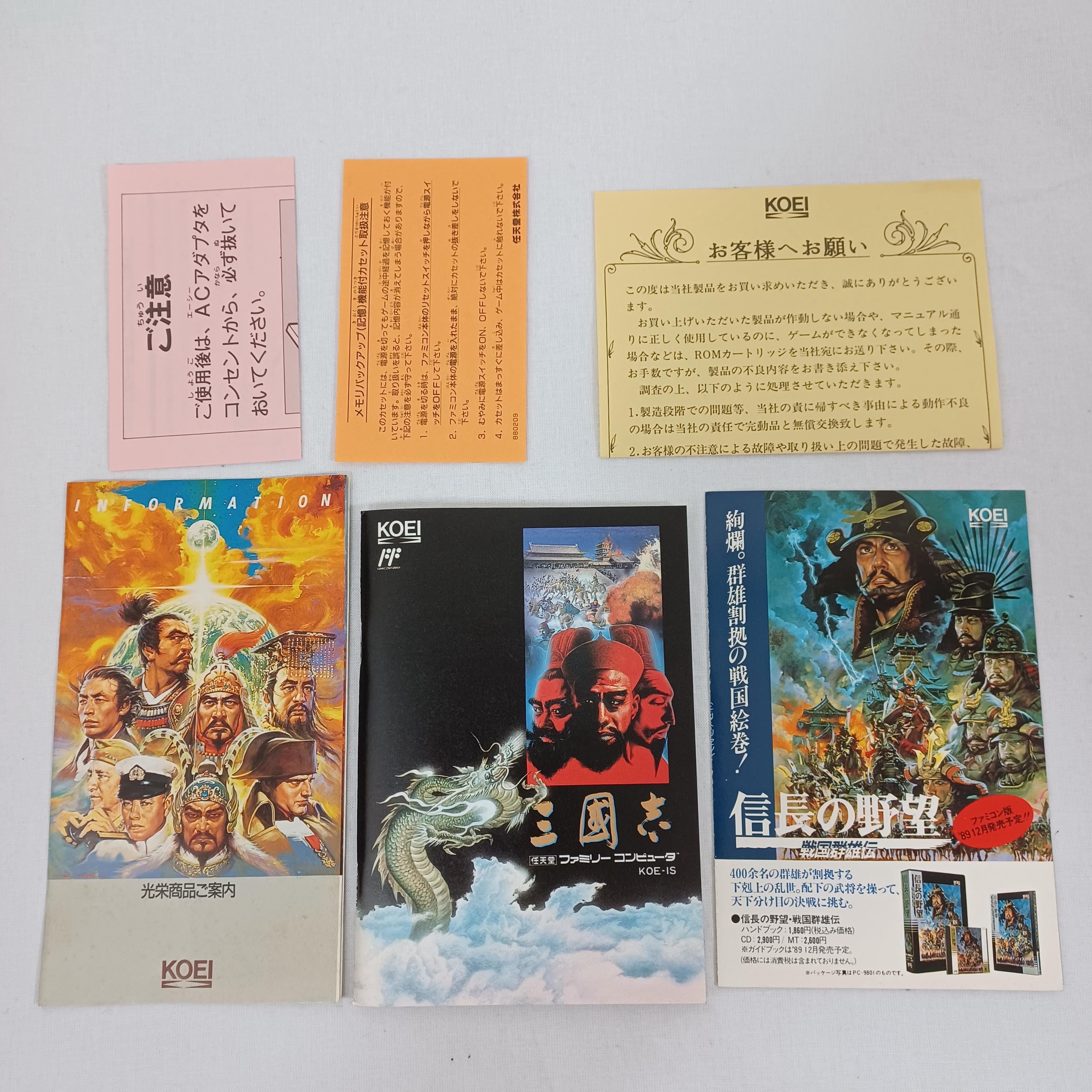 Used MINT Nintendo Famicom FC Koei Nobunaga no Yabou, Sangokushi CIB Japan Import