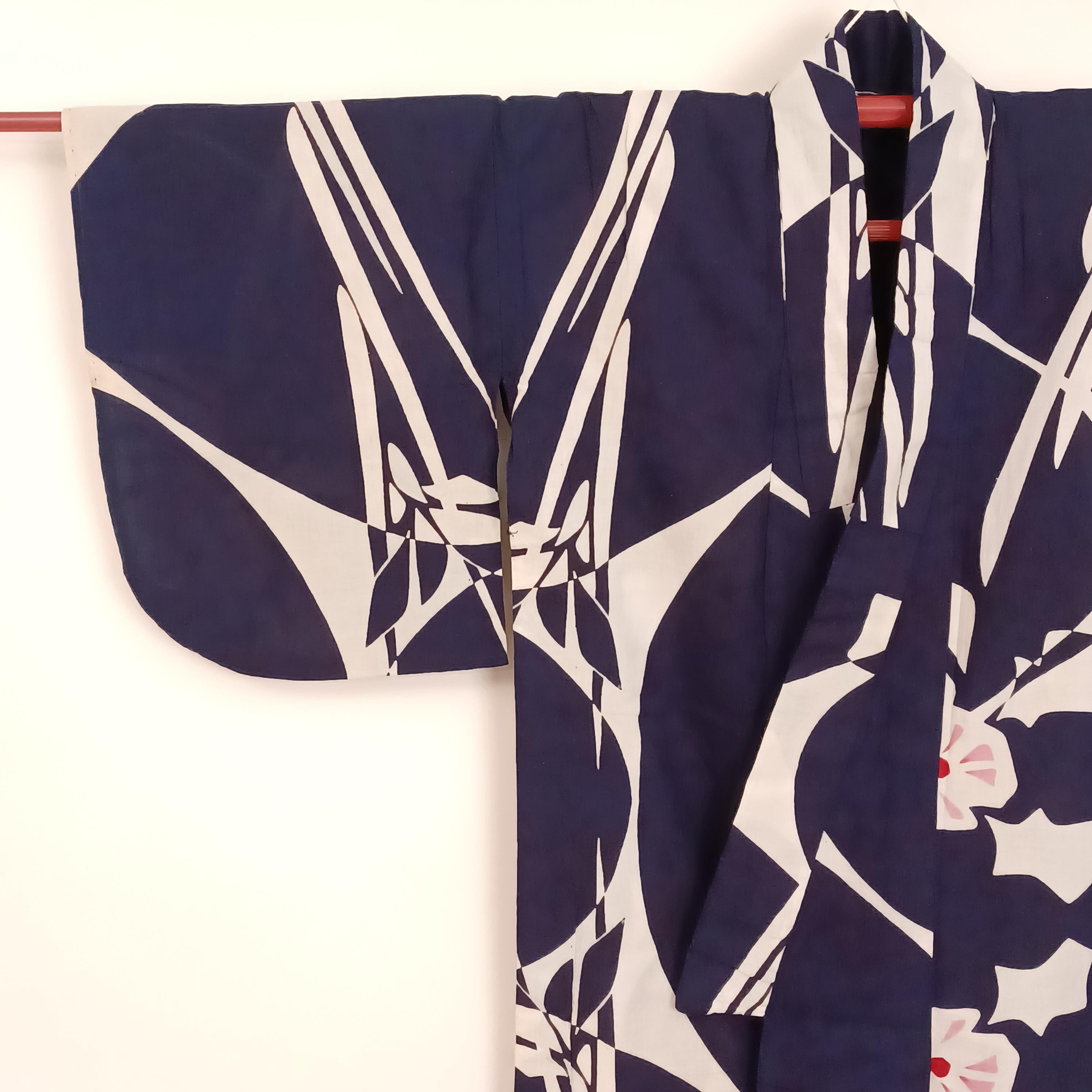 Used Navy Yukata Dressing Set with Pre-tied Hanhaba Obi, Kimono Board, Magic Belt & Waist Ties – Easy Summer Kimono Kit
