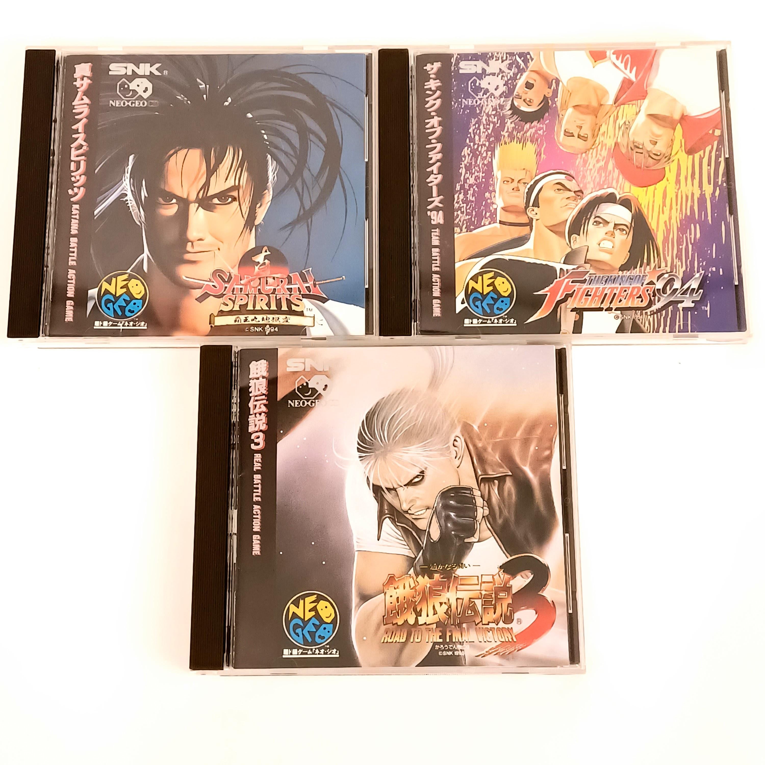 Used NEO GEO CD Game Lot – Japan Import – Samurai Spirits, kof '94, Real Bout Fatal Fury 3 – snk Fighting Game Set with Original Cases
