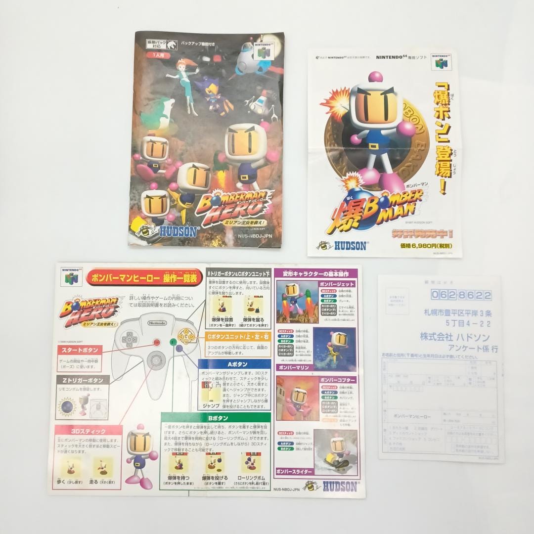 Used Nintendo 64 N64 Bomberman Hero 1998 CIB action Japan Import NTSC-J Tested