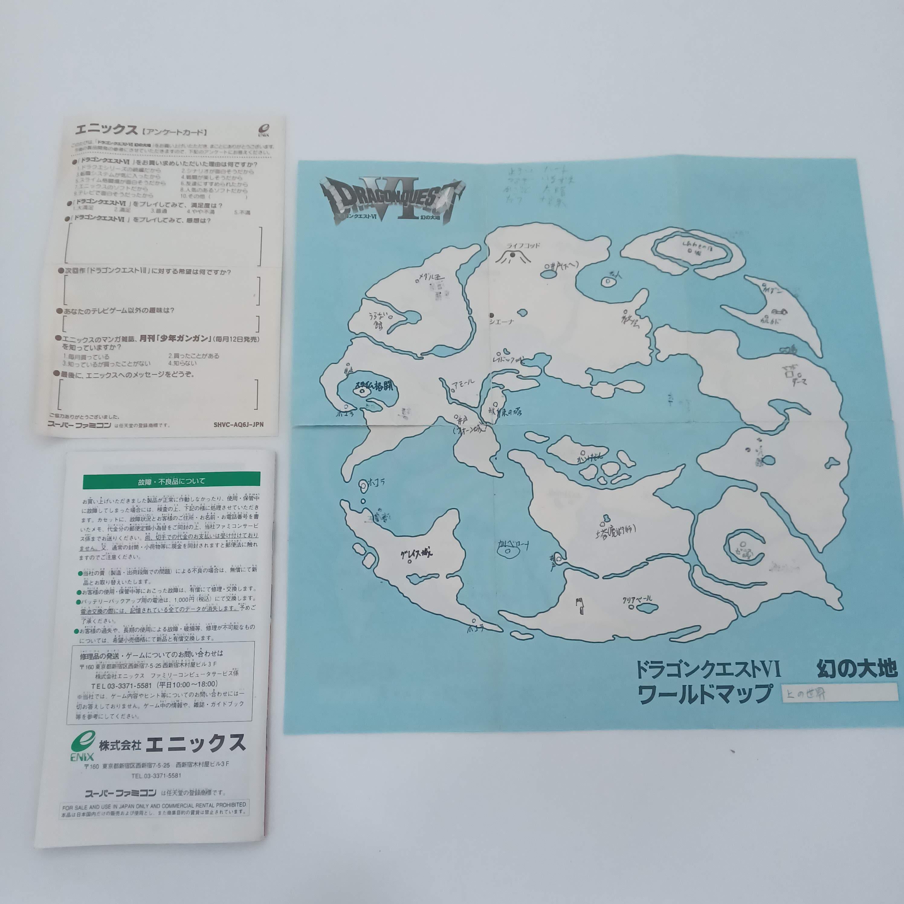 Used Nintendo Super Famicom SFC Dragon Quest VI 6 CIB Complete Japan Ntsc-J Tested