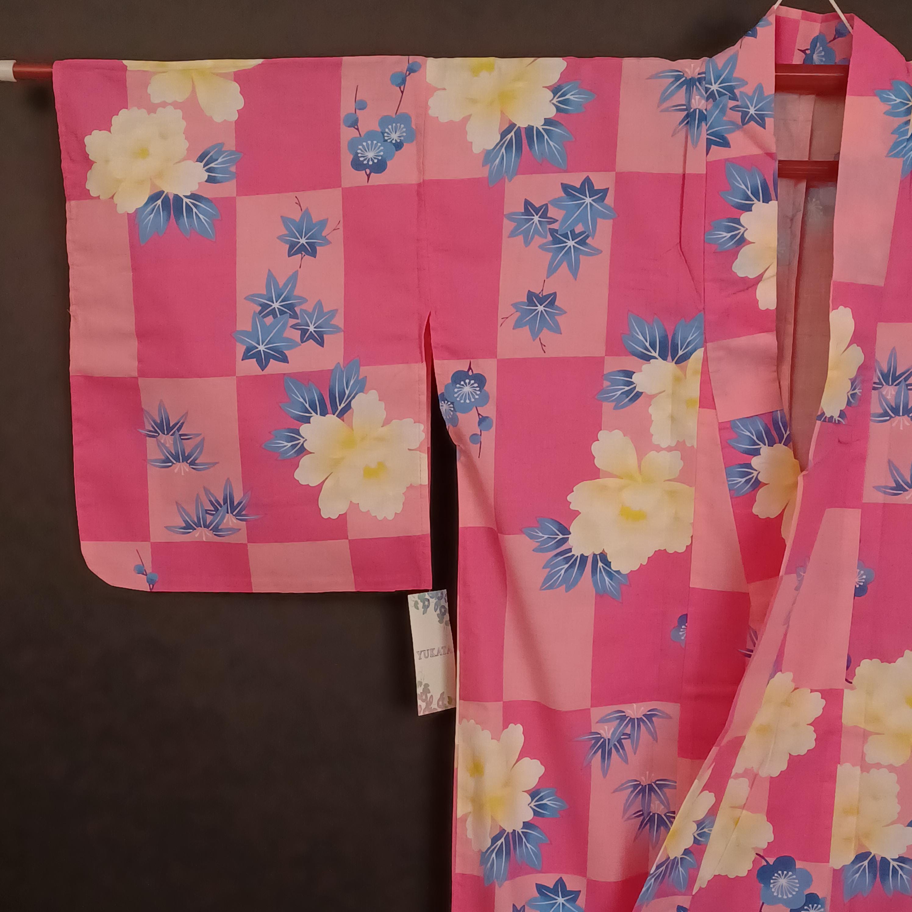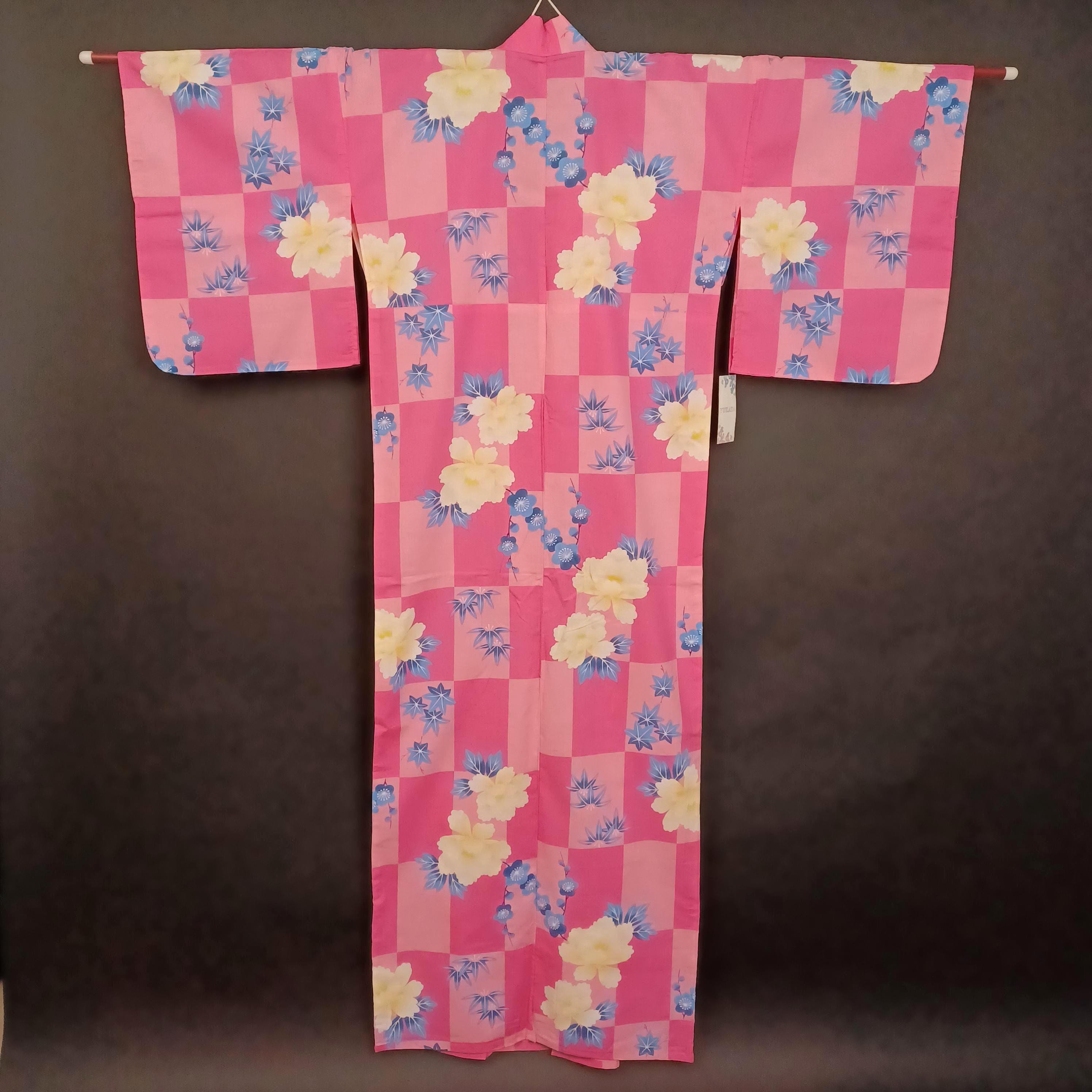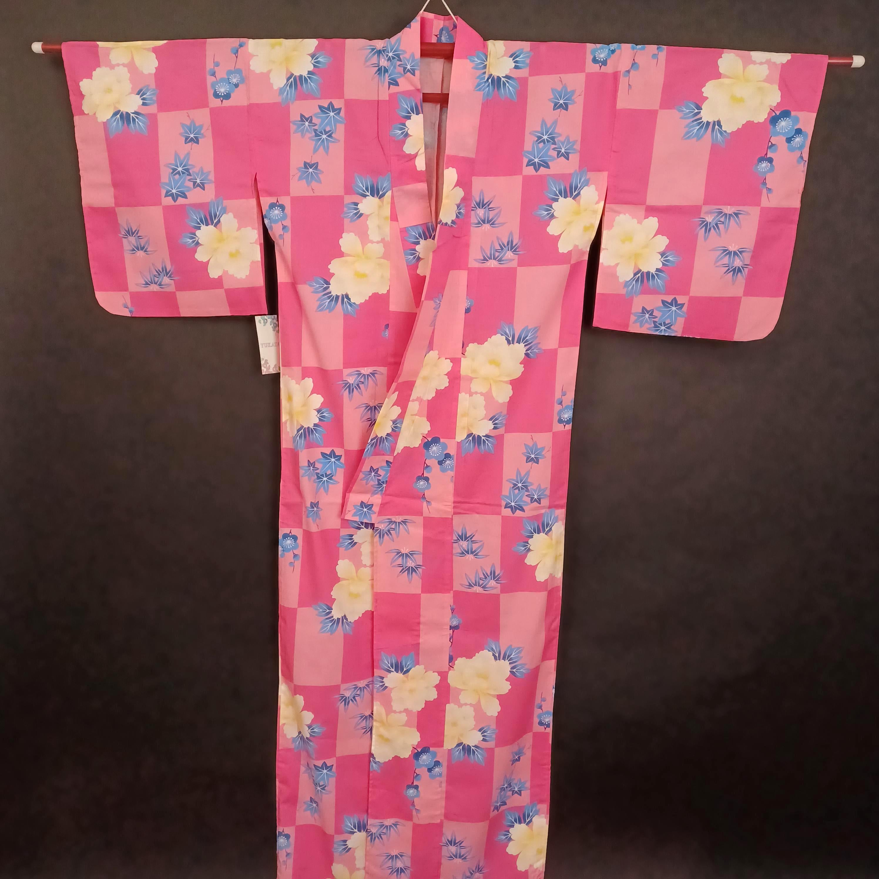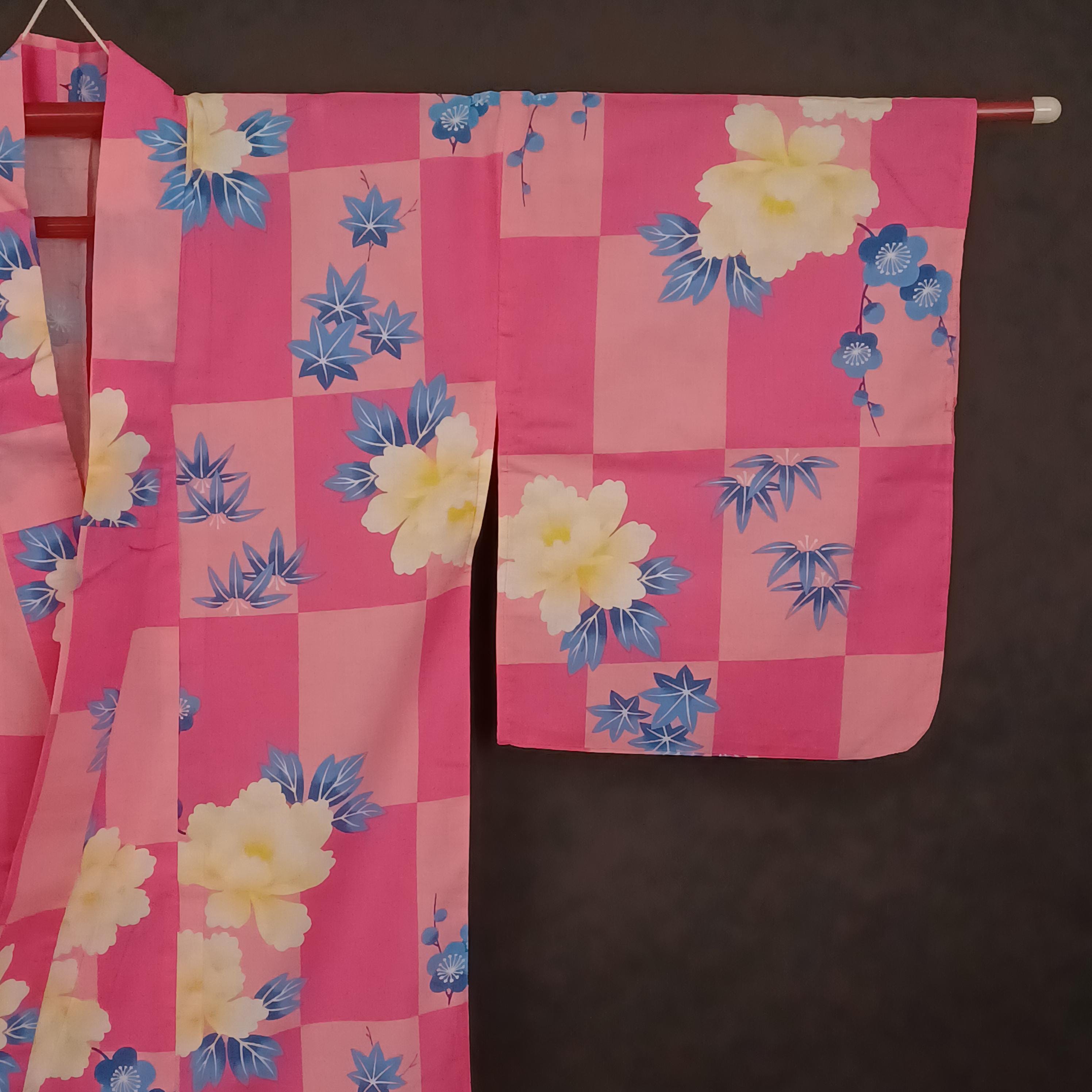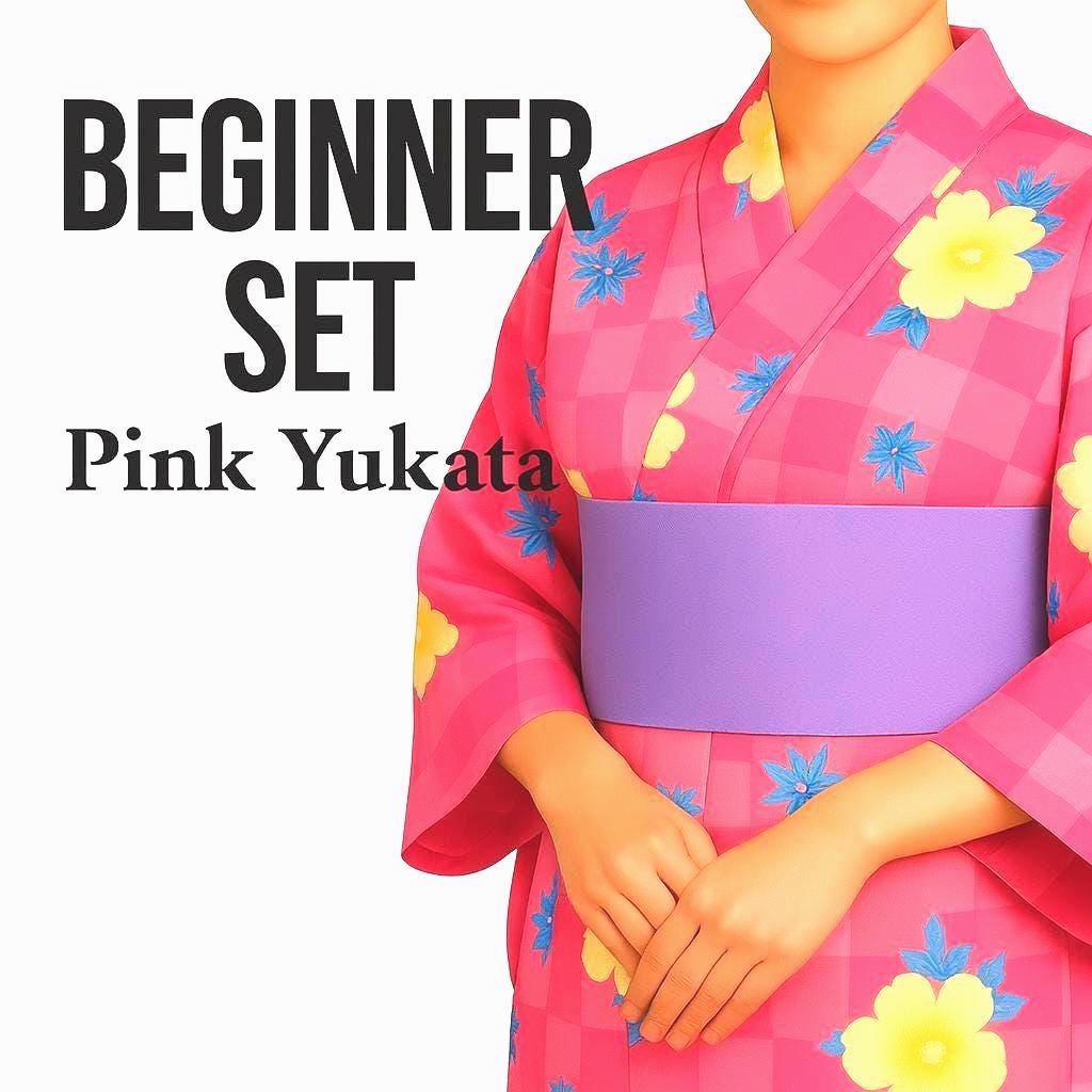 Used Pink Yukata Dressing Set with Pre-tied Hanhaba Obi, Kimono Board, Magic Belt & Waist Ties – Easy Summer Kimono Kit