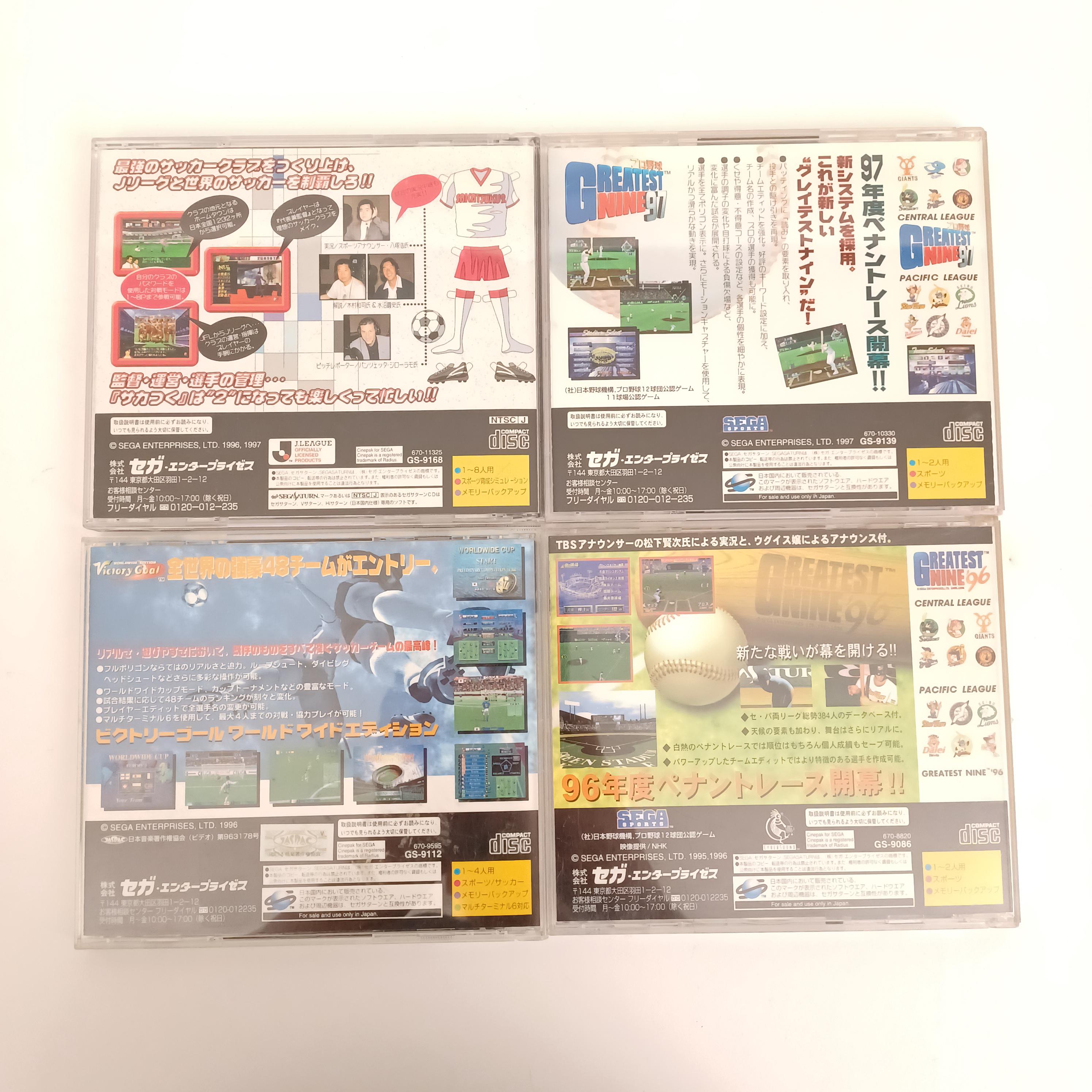 Used Sega Saturn Baseball & Soccer Game Lot - Greatest Nine '96 '97, Victory Goal, Pro Soccer Club o Tsukurou 2 (Japan Import)
