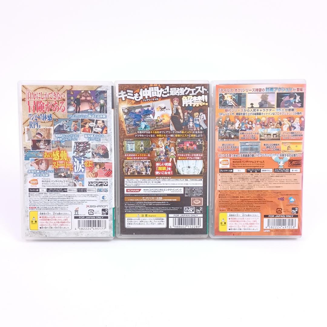 Used Sony PSP One Piece Fairy Tail 2 Tales of Versus 3 pcs Japan Import NTSC-J Tested