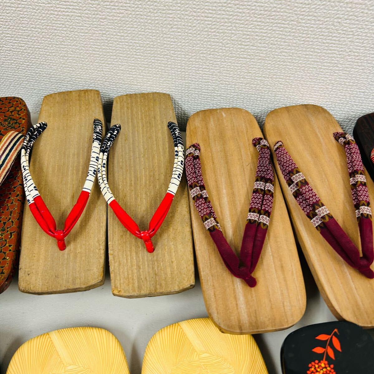 This set includes 13 pairs of Geta for both men and women, featuring various designs and materials, including wood and tatami. The items shown in the photos are the exact ones you will receive.