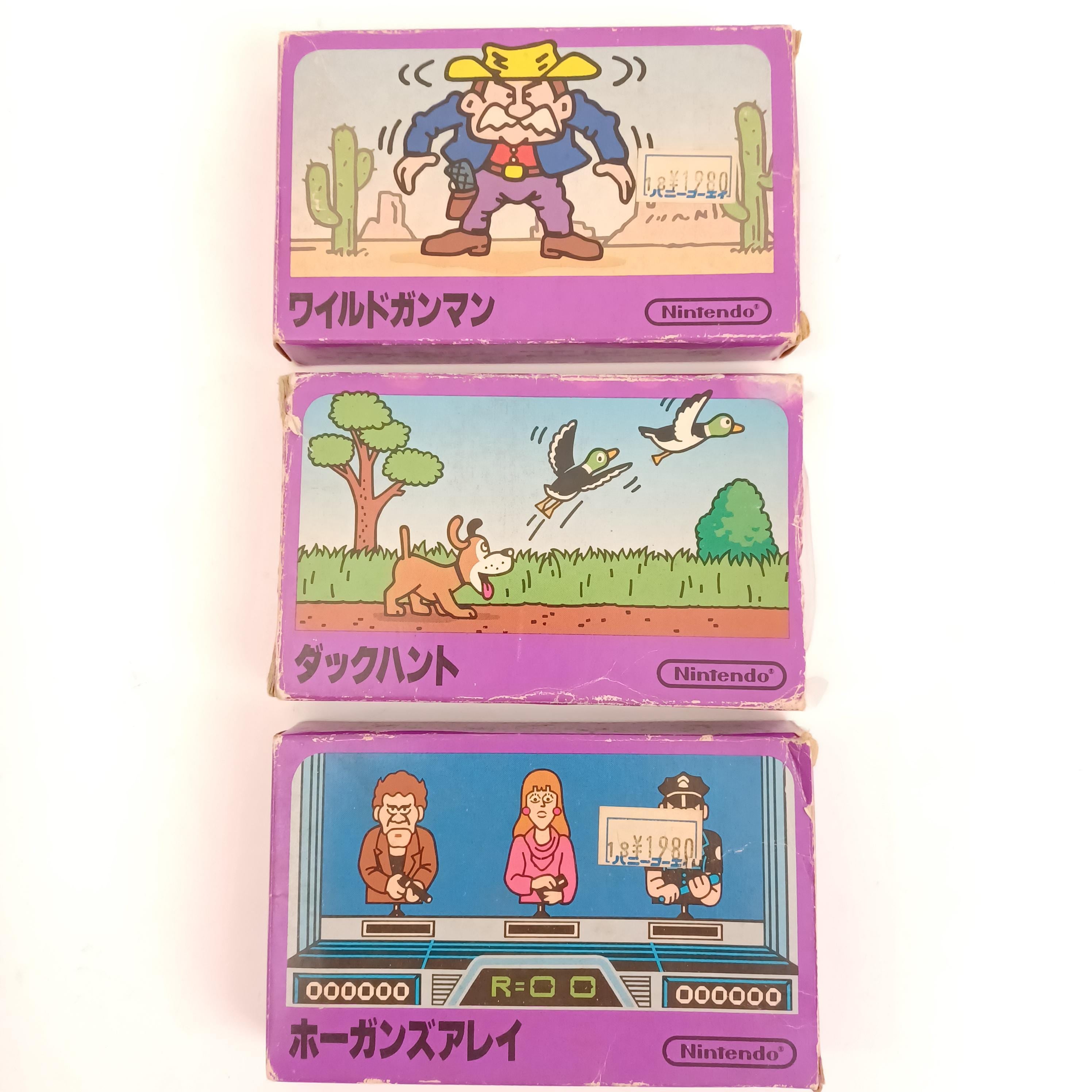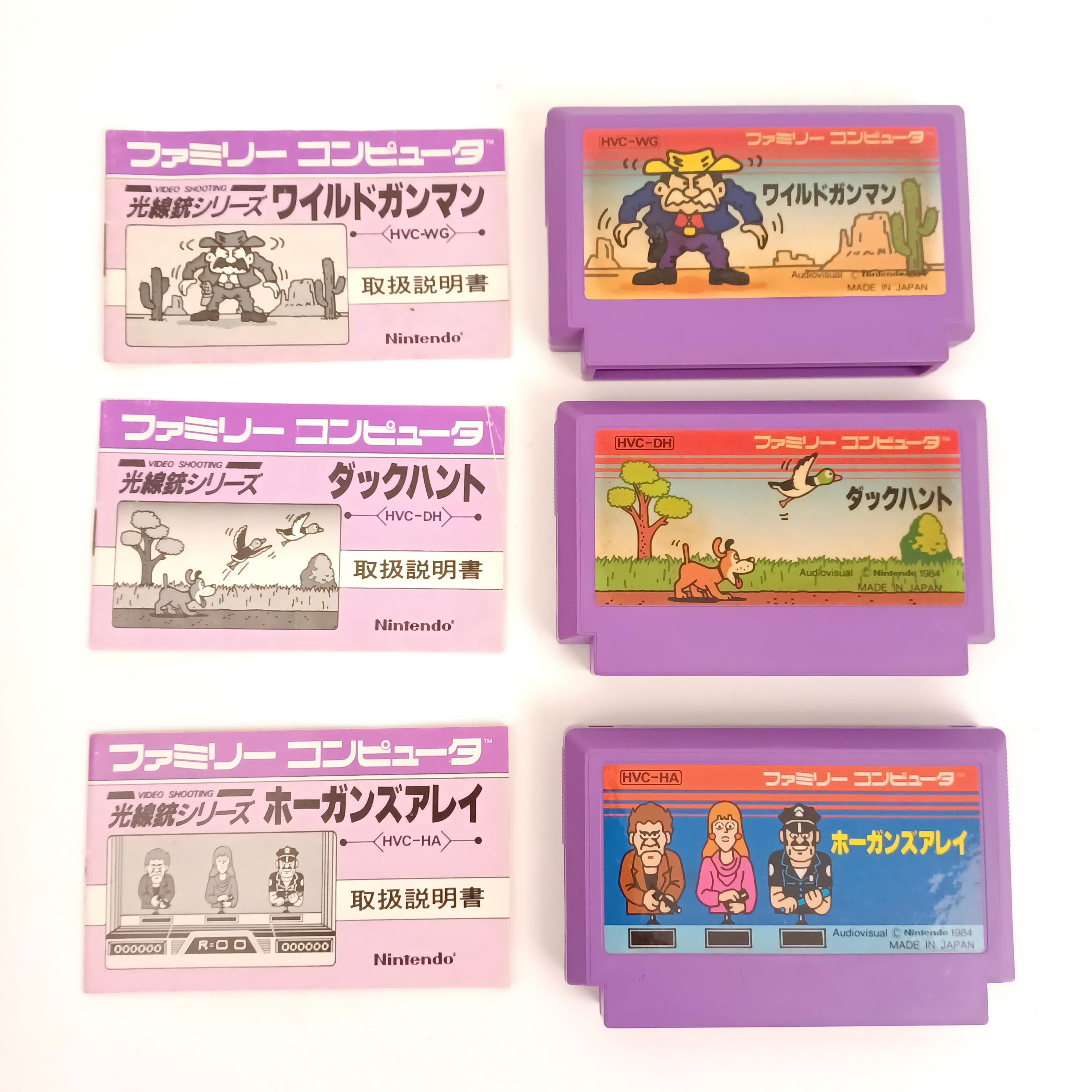 Used Vintage Nintendo Famicom Wild Gunman Set with Zapper Light Gun & Duck Hunt Hogan's Alley CIB Game Cartridge Rare Kosenju Series