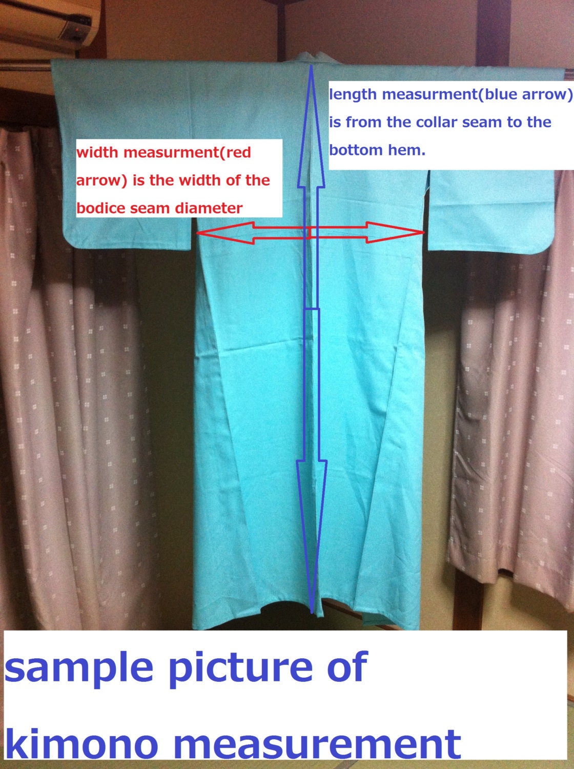 Kimono size: Width 24.0 inch (61 cm) : Length 61.8 inch (157 cm)