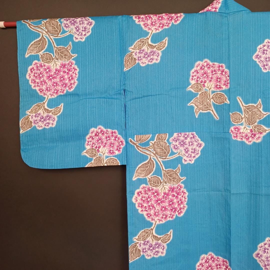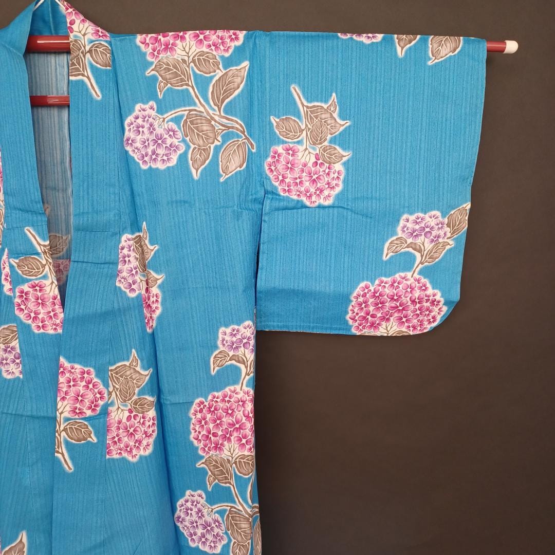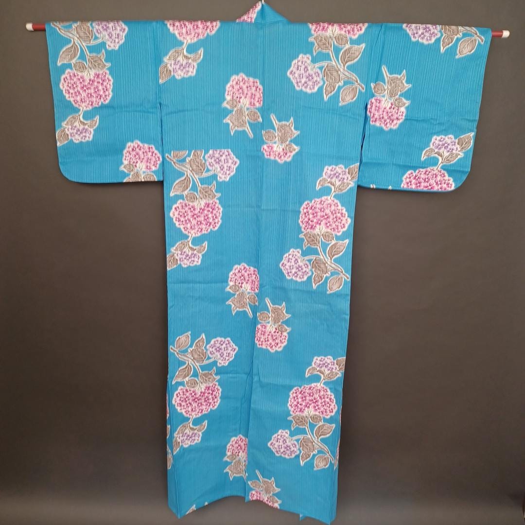 Used Women's Yukata Summer's Kimono Blue Flower Cotton Japanese vintage traditional