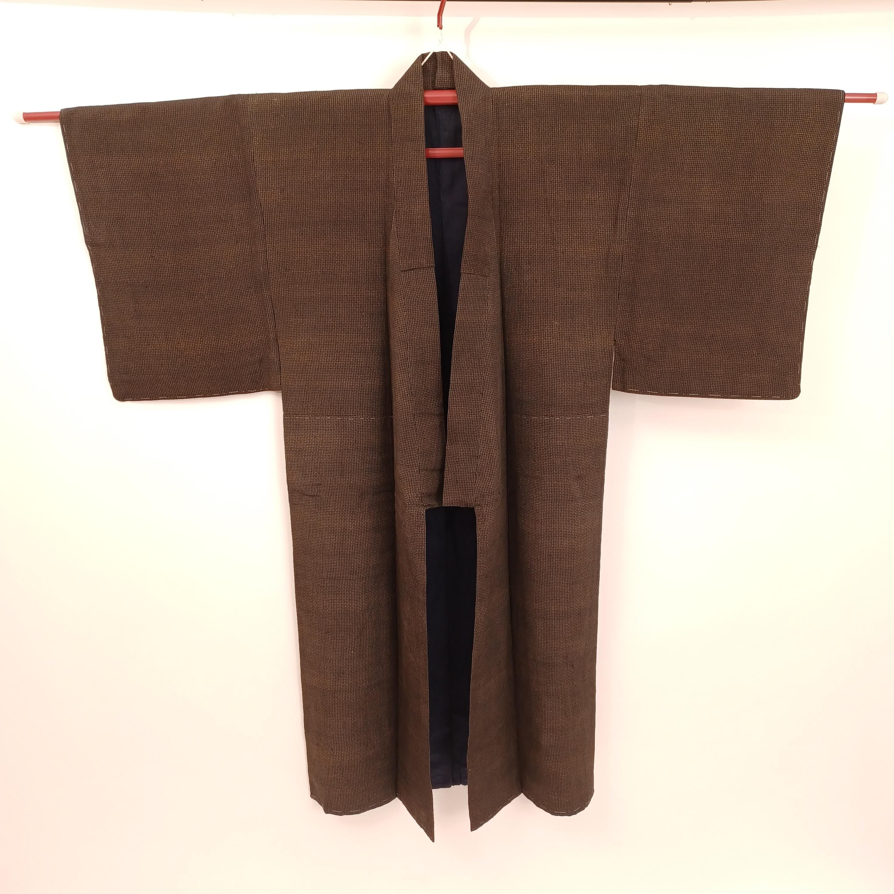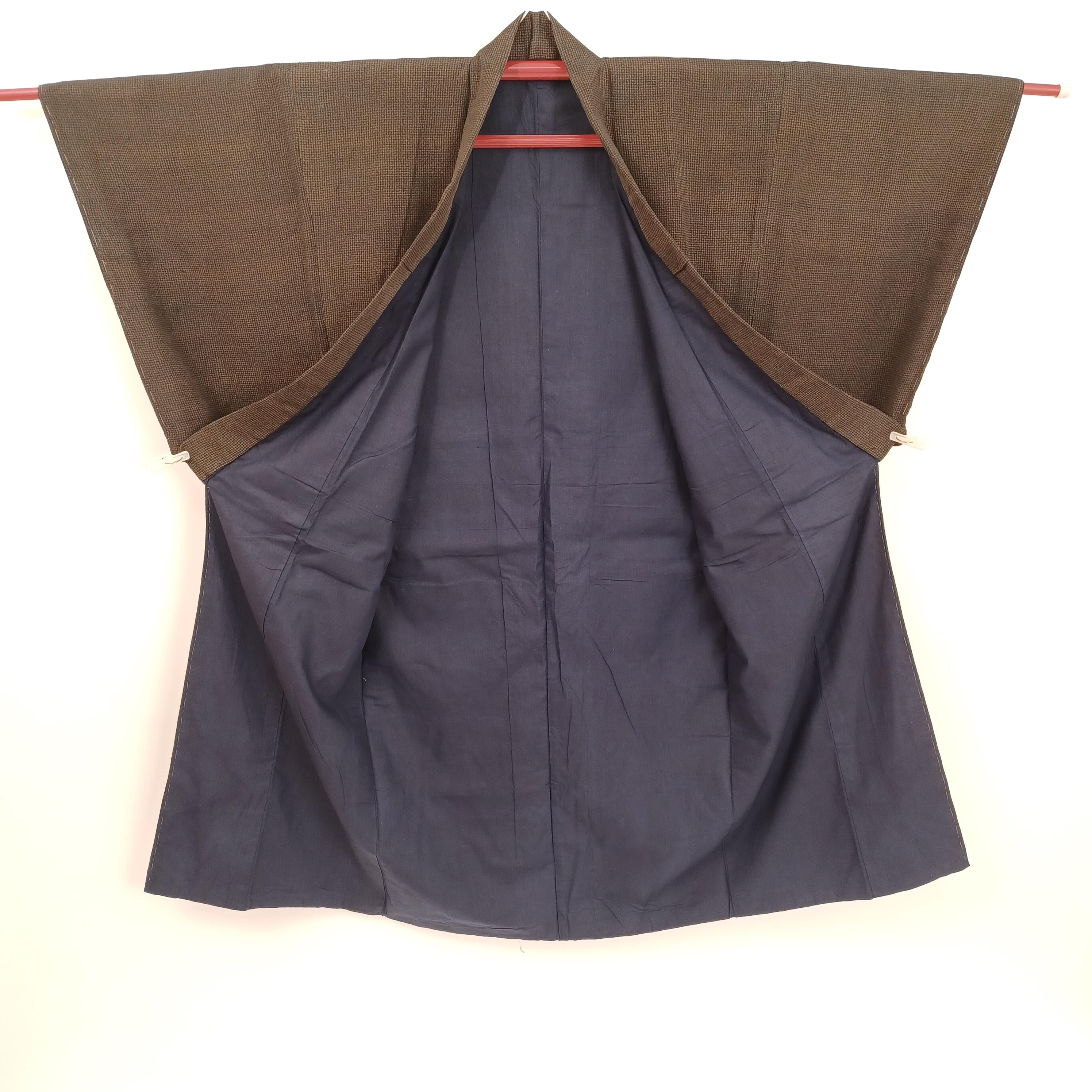 Vintage Japanese Men's Haori Jacket Brown Kimono Coat with Lining, Traditional Kimono Overcoat, Made in Japan