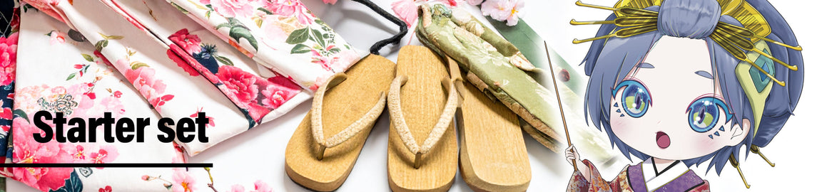 Used Blue Yukata Dressing Set with Hanhaba Obi, Front Board, Pillow, Magic Belt & Ties – Easy Kimono Starter Kit