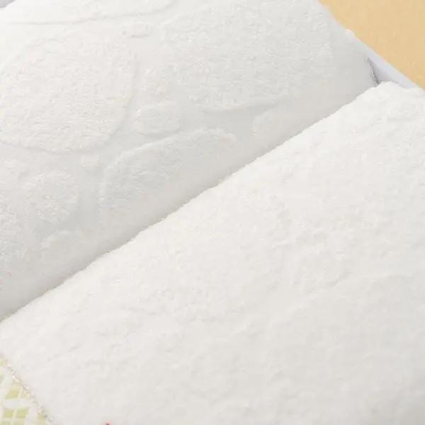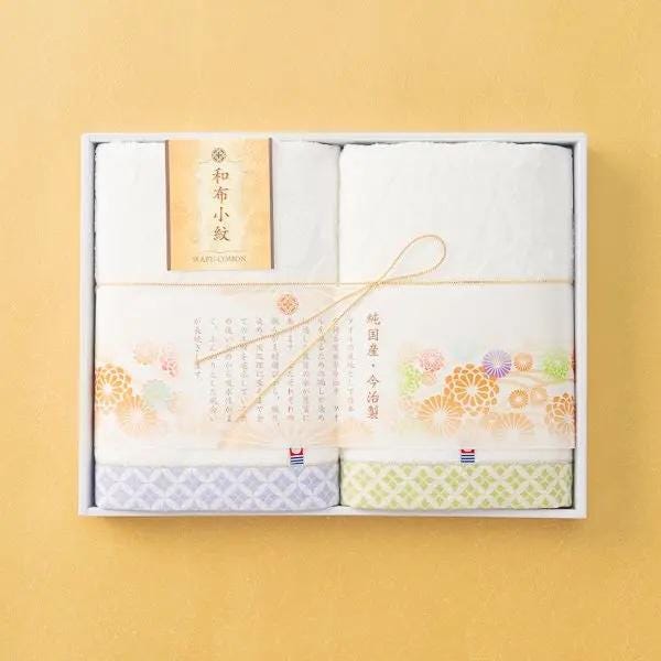 This exquisite bath towel set features a beautiful Japanese Komon pattern with delicate lame accents on a pure white background. The gentle colors on the traditional pattern add a touch of charm, making this set feel like a truly special gift.