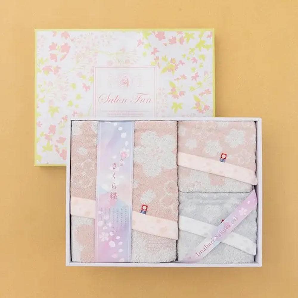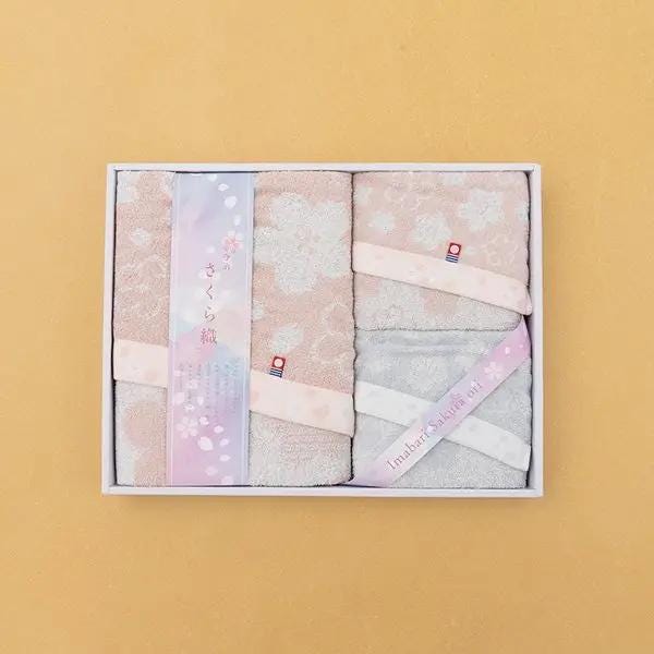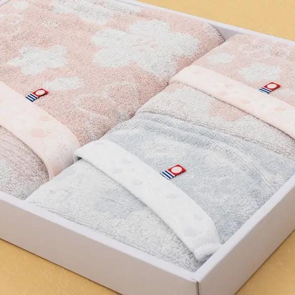 Imabari Towel Set - Japanese Sakura Woven Bath and Face Towels, Elegant and Absorbent, Luxury Gift Box, Made in Japan