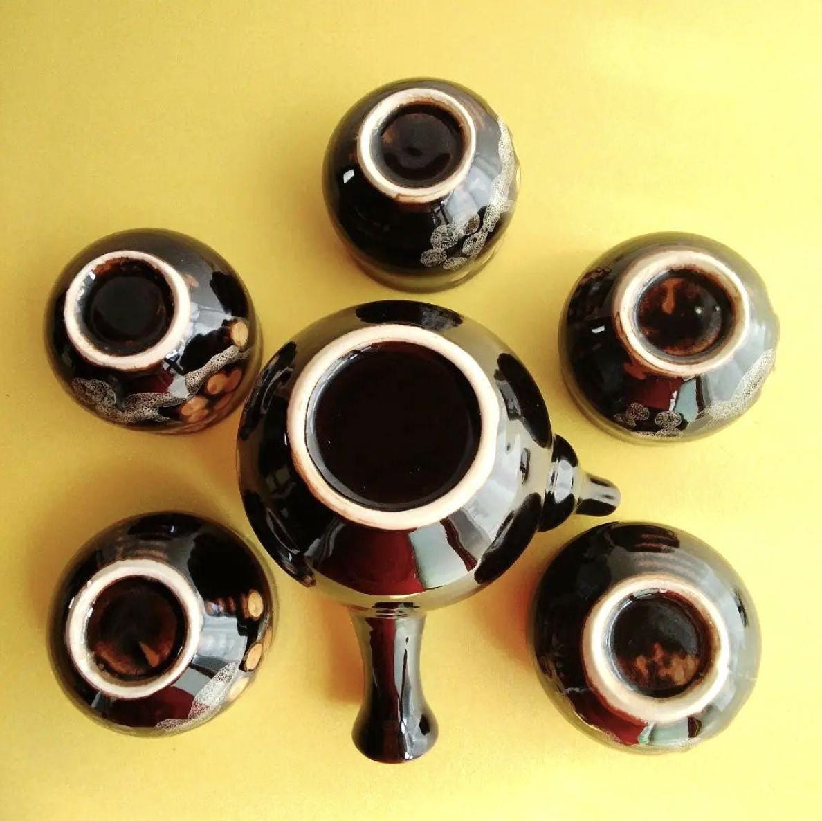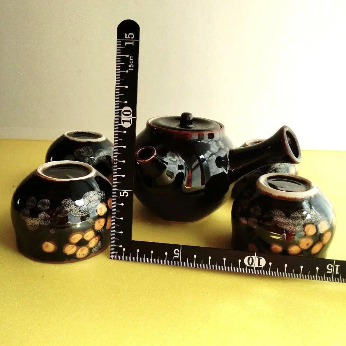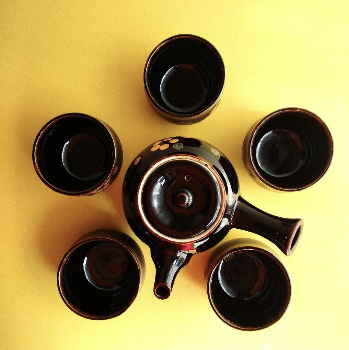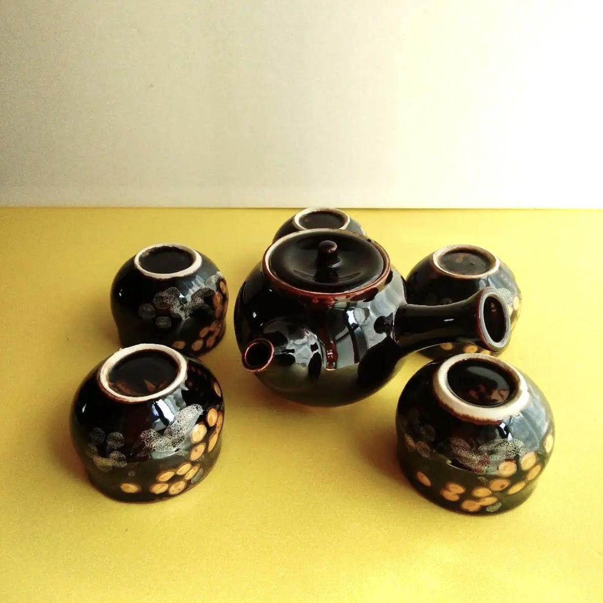 Japanese Black Kyusu Teapot and 5 Teacups Set – Subtle White Dot Motif – Minimalist Ceramic – Traditional Gift from Japan| Forgot Souvenir