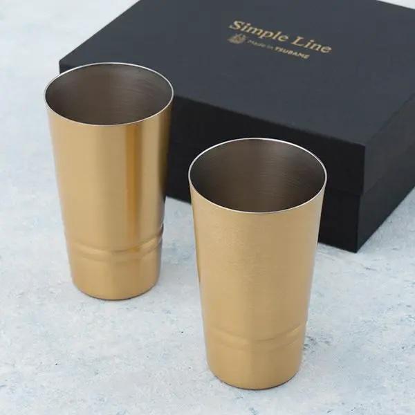 Japanese Brass Beer Cup Pair - Tsubame-Sanjo Artisan Craft, Luxury Matte Finish Gift Set Made in Japan| Forgot Souvenir