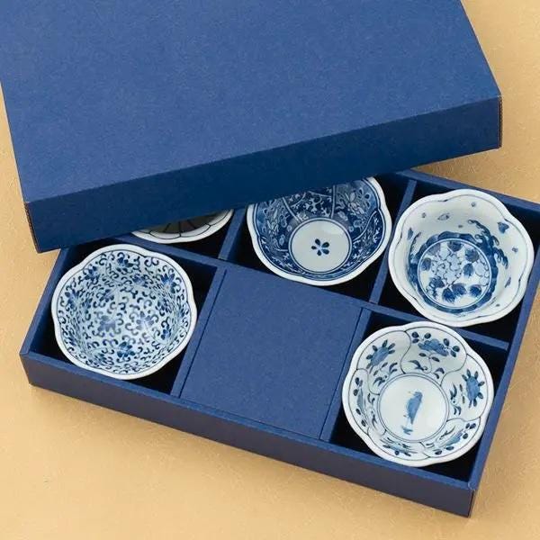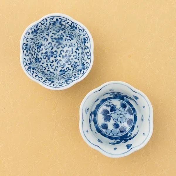 Japanese Hasami Ware Blue & White Small Bowls, Flower-Shaped Porcelain Set of 5, Microwave-Safe Gift from Japan| Forgot Souvenir