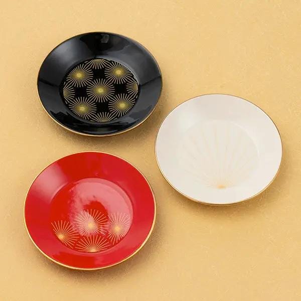 Japanese Porcelain Mini Plate Trio Set - Fireworks & Wagasa (Umbrella) Pattern, Elegant Gift from Japan| Forgot Souvenir