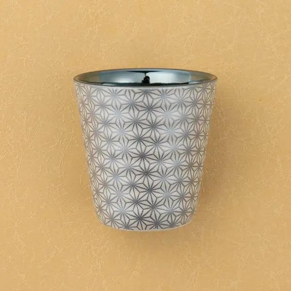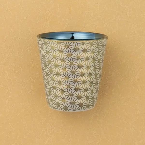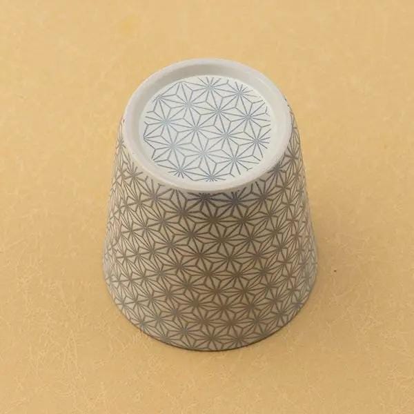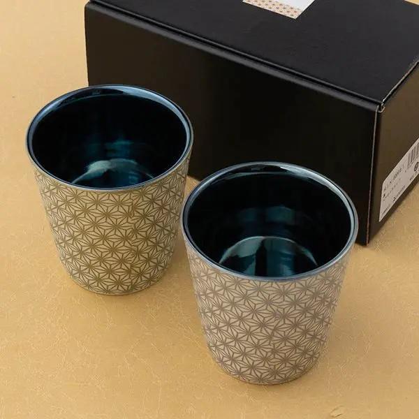 This beautiful pair of Japanese porcelain rock cups features a stunning contrast between a glossy interior and a textured, matte exterior. The main feature is the traditional Asanoha (hemp leaf) pattern, a beloved Japanese motif that symbolizes a wish for healthy growth and warding off evil spirits. 🍀