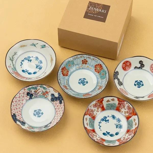 Japanese Porcelain Sometsuke Koimari-Style Bowl Set - Mino Ware Medium Bowls with Elegant Box, Microwave & Dishwasher Safe| Forgot Souvenir