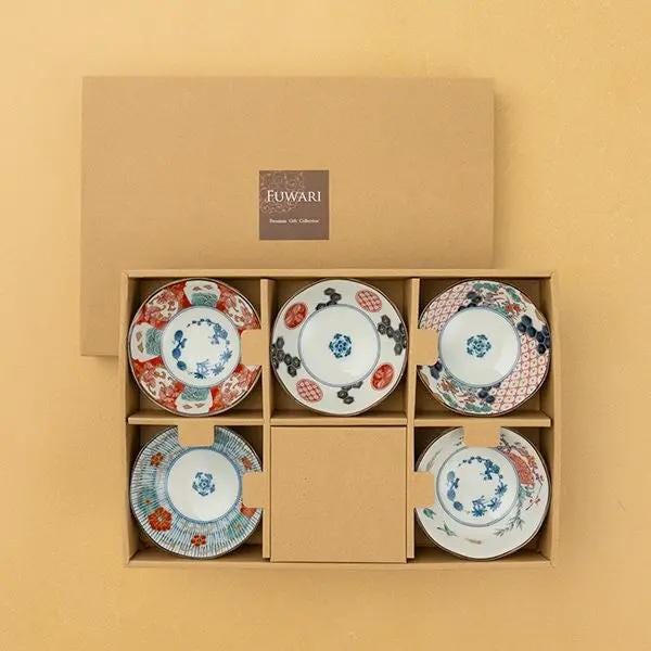 Japanese Porcelain Sometsuke Koimari-Style Plate Set - Mino Ware Mini Plates with Elegant Box, Microwave & Dishwasher Safe| Forgot Souvenir