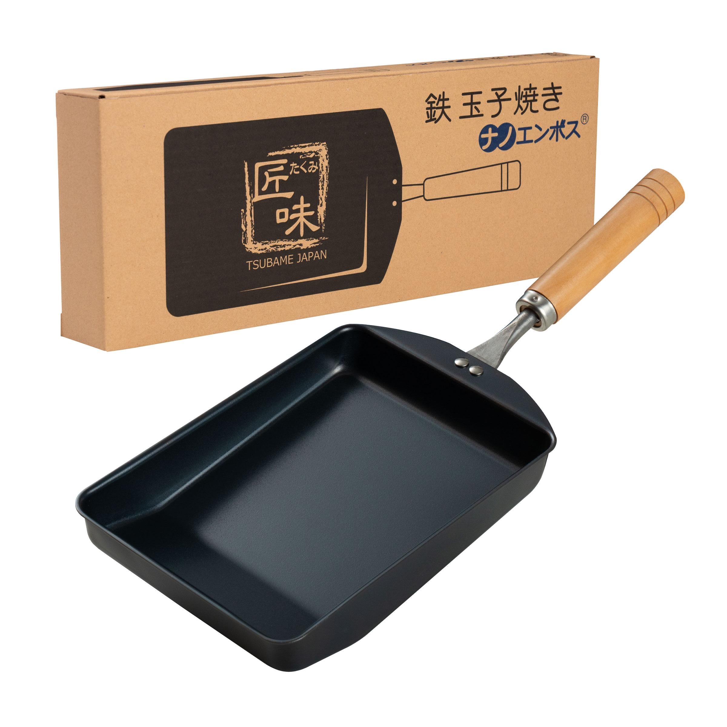 Japanese Tamagoyaki Pan – Rectangular Iron Omelette Pan with Wooden Handle – 7.9 x 5.5 in – Gas and IH 200V Compatible – Made in Japan