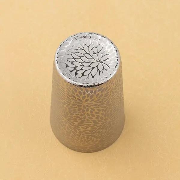 Adorned with elegant platinum and gold accents by skilled artisans, this porcelain cup radiates a sense of luxury and sophistication. The chrysanthemum (kiku) pattern adds a touch of traditional Japanese beauty.