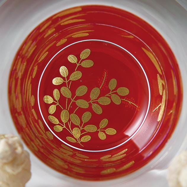 Made in Japan Nurimon de Verre Daruma Glass 2 pcs with Makie Flower Nakanishi For Gift Birthday Thanksgiving Wedding| Forgot Souvenir