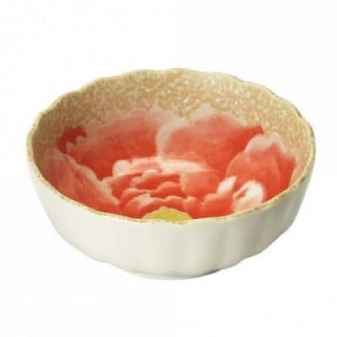 New Japanese Momoyama Peony Flower Bowl and Plate Set of 4 Mino Ware Ceramic Dessert Set Microwave and Dishwasher Safe Made in Japan