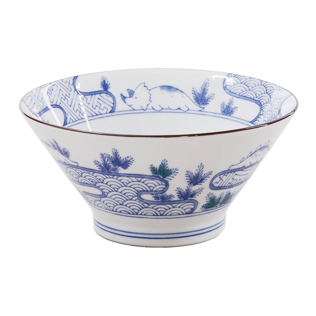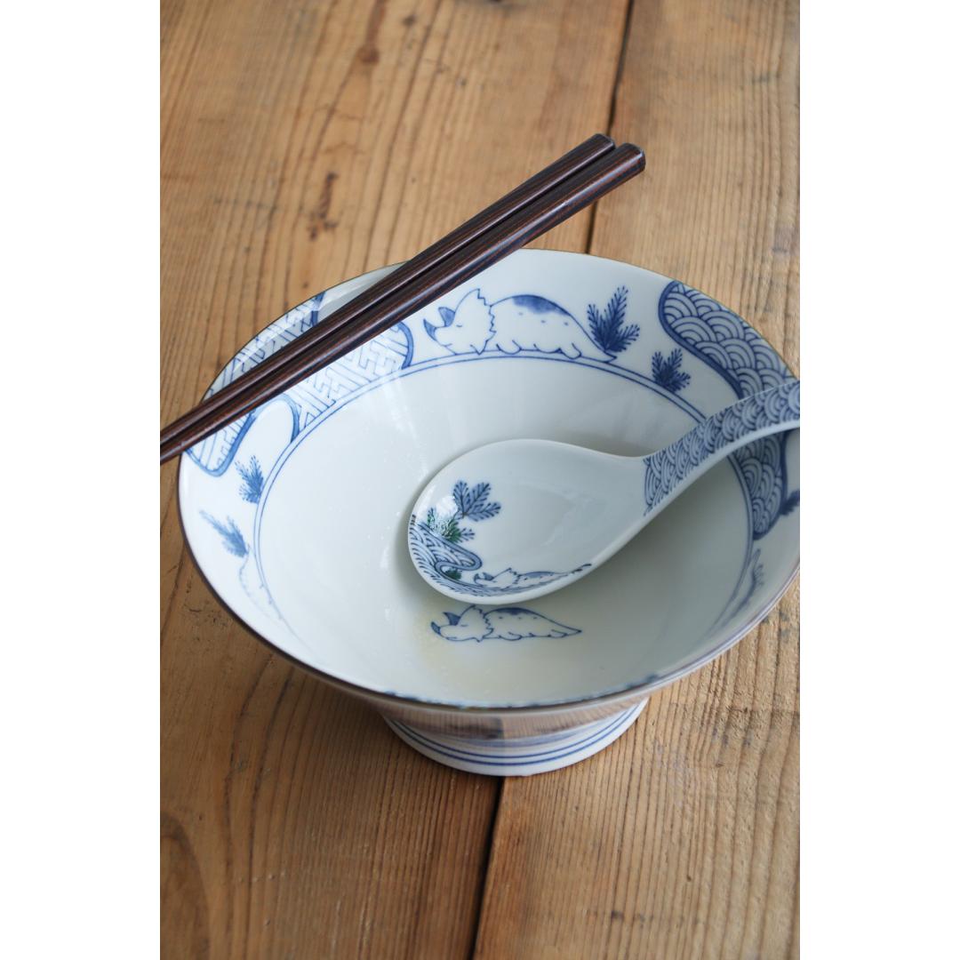 New Japanese Ramen Bowl and Spoon Set Dinosaur Pattern Mino Ware Pottery Ceramic Noodle Bowl Microwave Dishwasher Safe Made in Japan